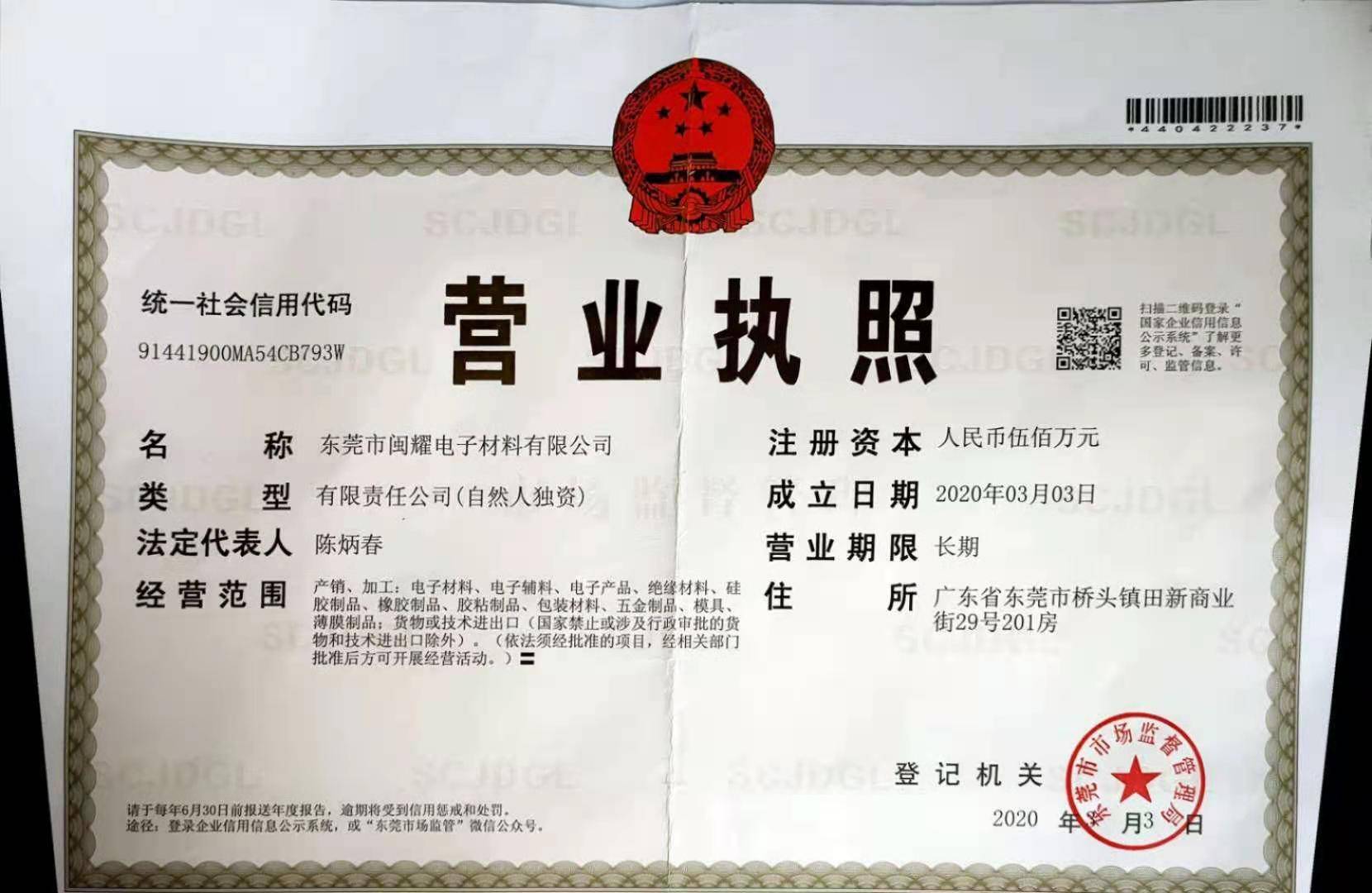 东莞市闽耀电子材料有限公司
