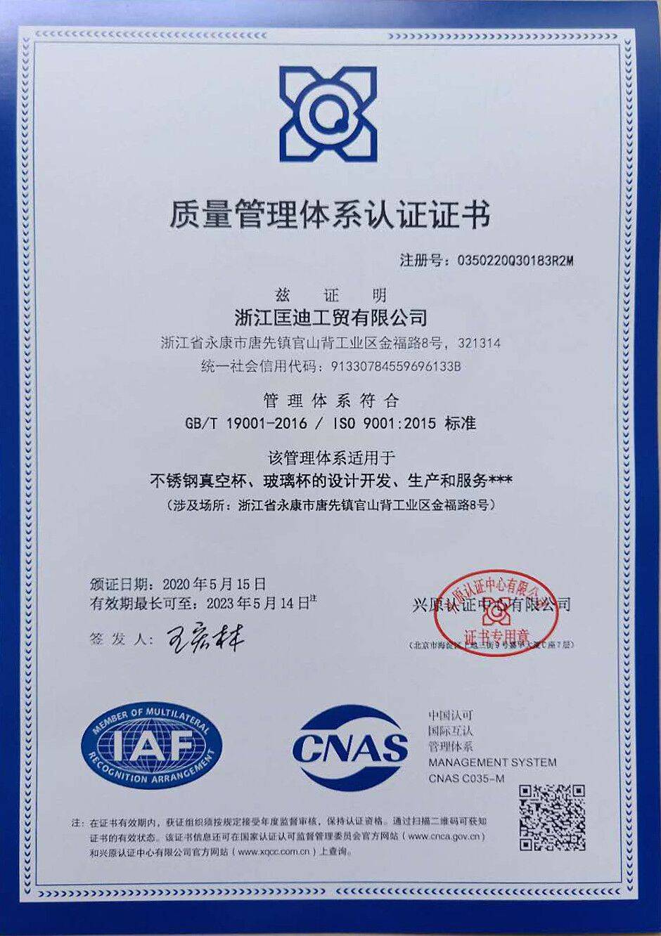 浙江华象杯业有限公司是一家从事保温杯壶的制造型企业,有着十五年的制造和开发经验,公司位于著有“中国杯都”之称的永康市。 公司设有下属四个分厂,厂房占地面积10000cm,具备5万只的日生产能力和150...