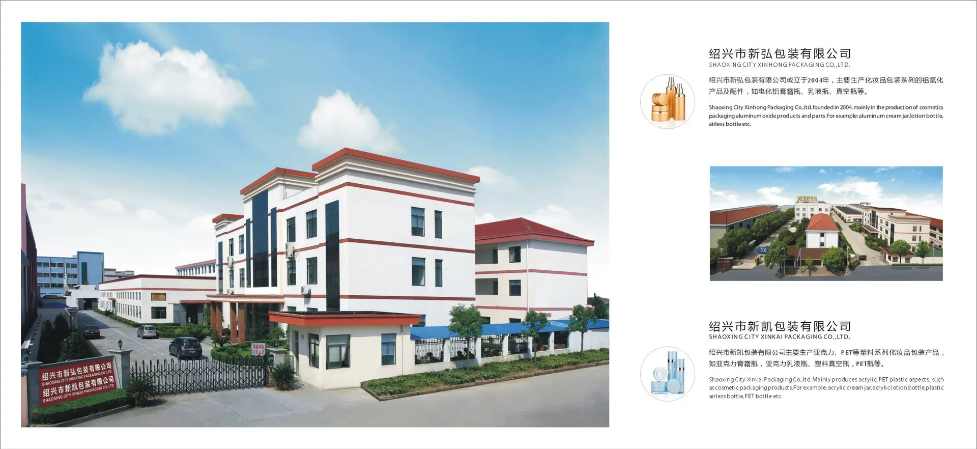 绍兴市新弘包装有限公司是化妆品包材:膏霜瓶、乳液瓶、真空瓶等产品专业生产加工的厂家,同时拥有塑料生产线,和氧化铝生产线。拥有完整、科学的质量管理体系。绍兴市新弘包装有限公司成立于2004年,他的诚信、...