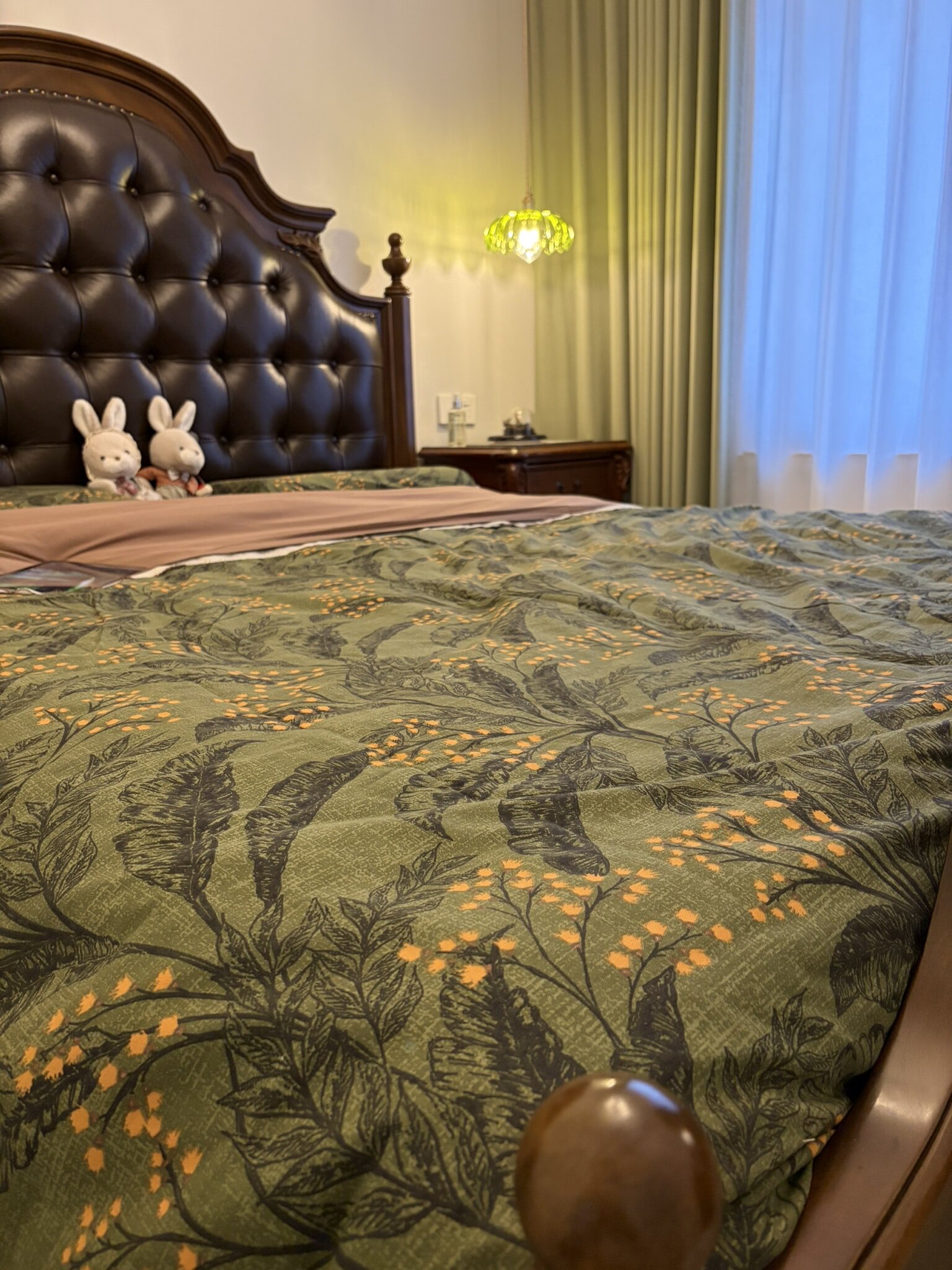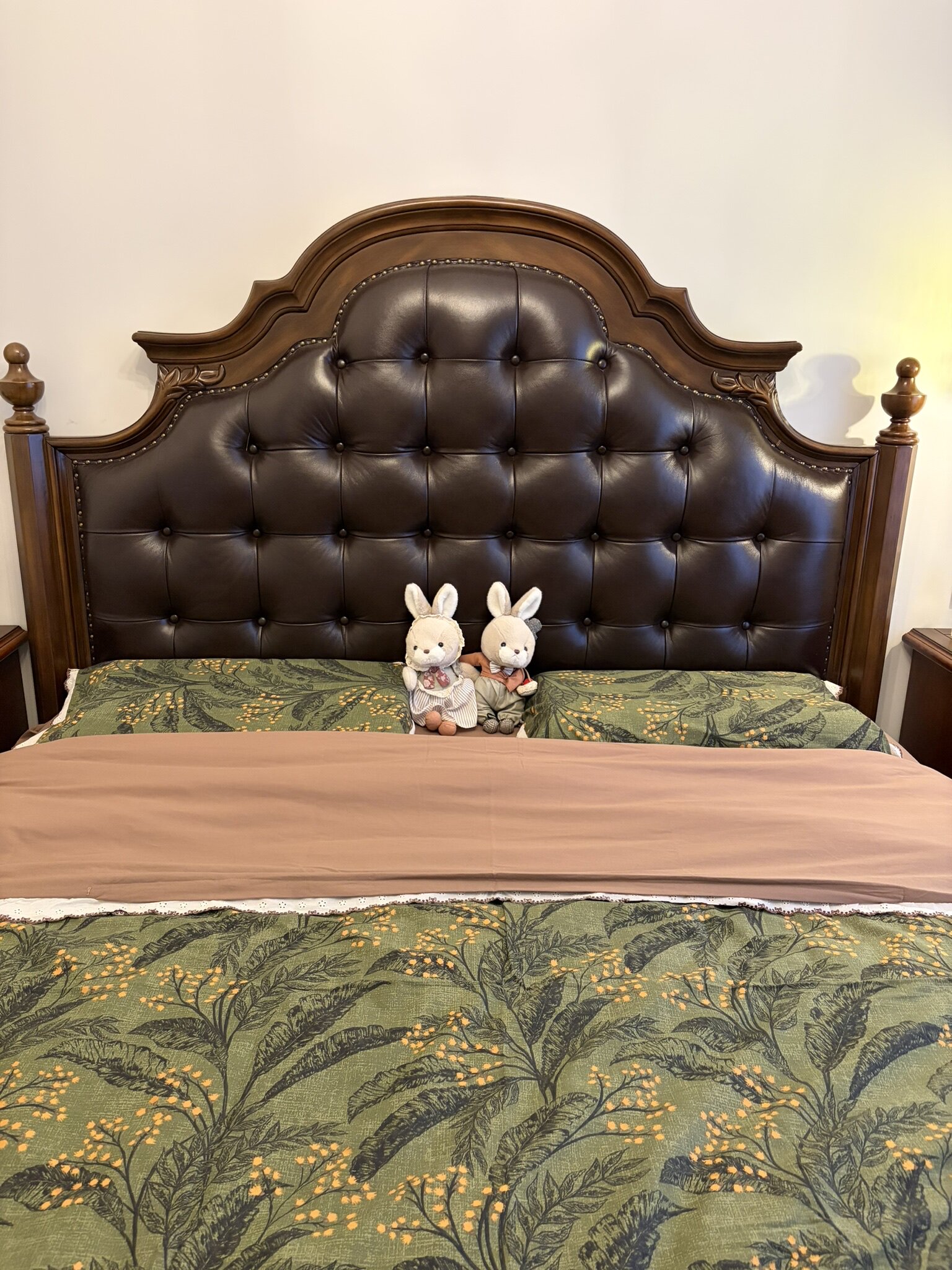 细节做得很到位,床尾的蕾丝花边和咖色拼接超精致,一看就不是廉价货,朋友来我家都问链接哈哈~2026.3.24