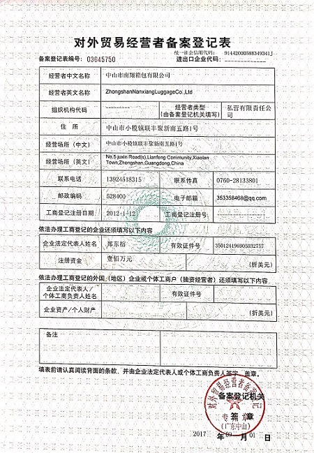 中山市南翔箱包有限公司