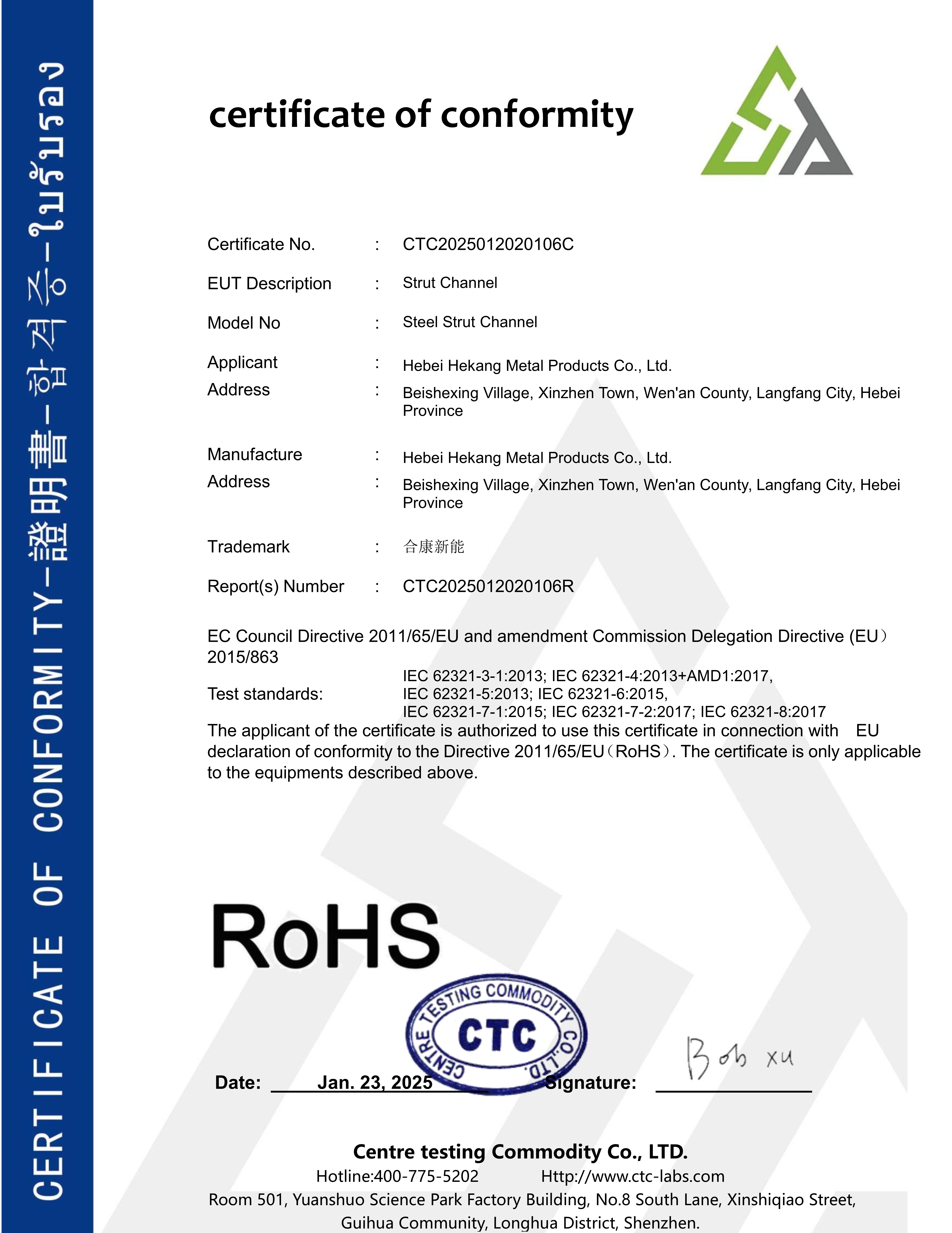 拥有RoHS认证