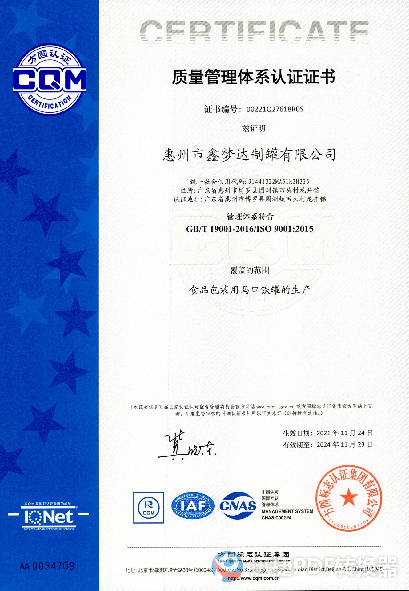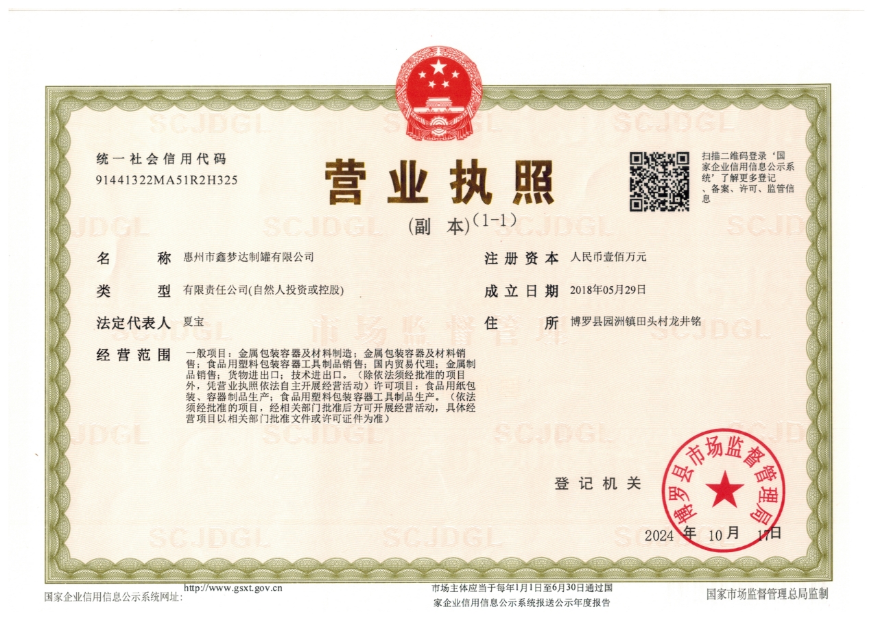 惠州市鑫梦达制罐有限公司