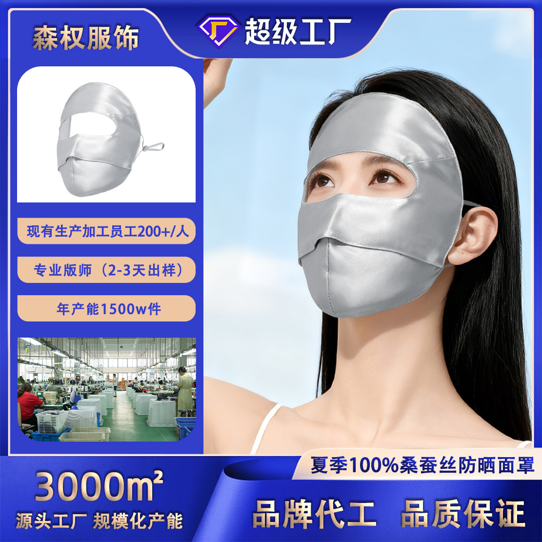 东阳森权服饰有限公司始创于2012年6月,是一家集设计、开发、生产、销售丶自主出口于一体的服饰工贸公司。 公司主要生产口罩和服装配饰等产品,现有员工100余人,厂房占地面积3000平,具有世界先进工艺...