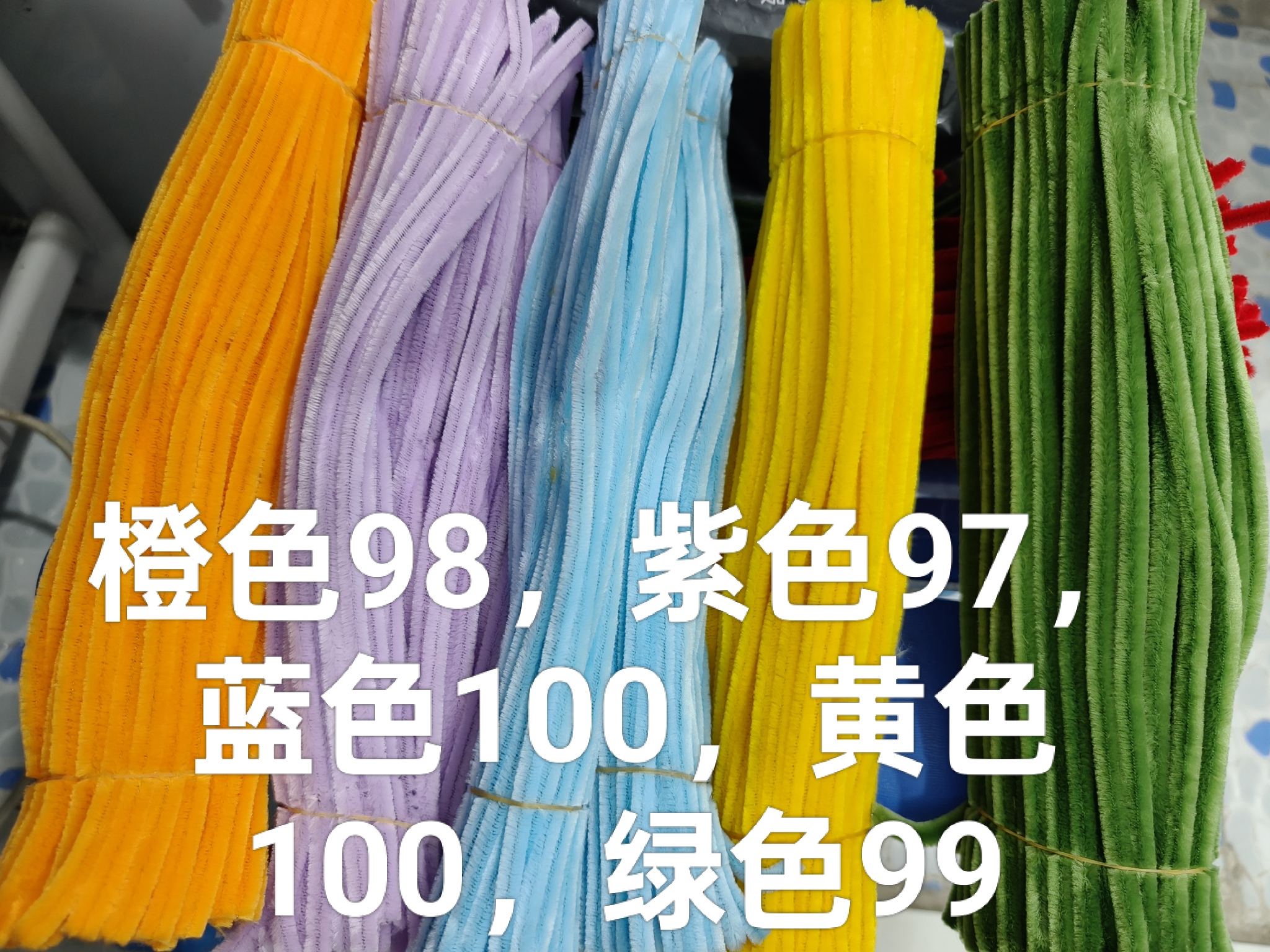 买了5个颜色,这里会稍微便宜点,只有2个颜色是够100根的,其他稍微少几根。 密度一般,只有橙色绿色黄色密度是比较厚实的,蓝色密度小。2025.9.9