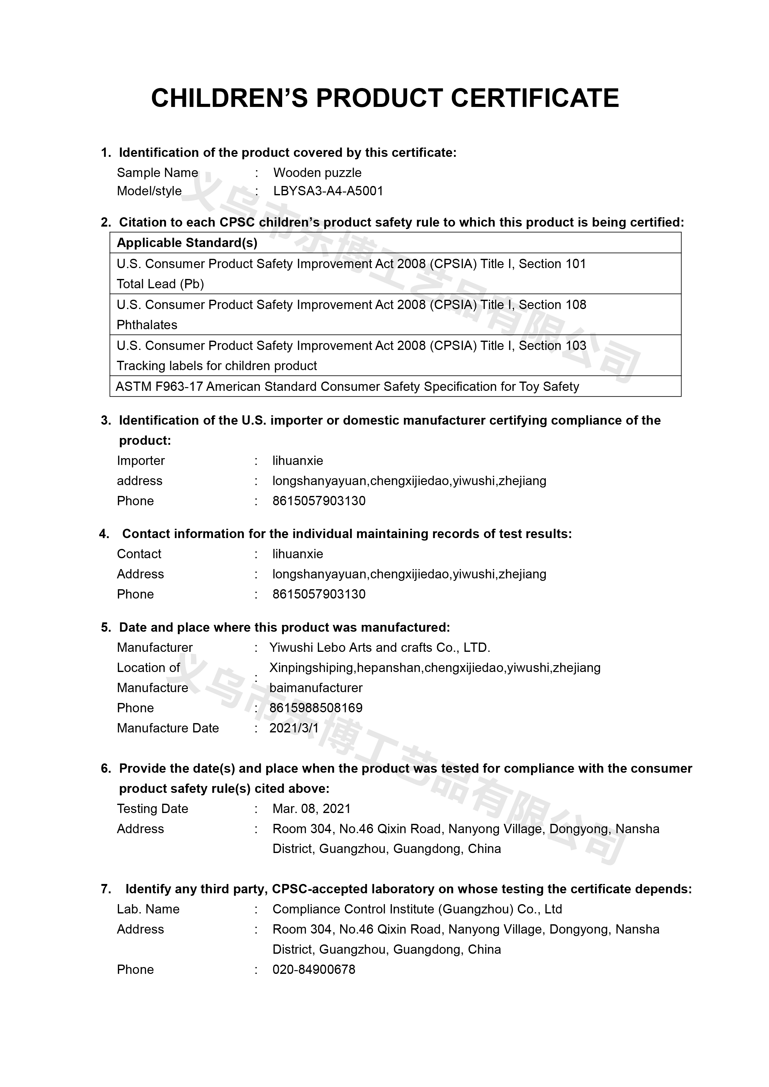 义乌市乐博工艺品有限公司位于中国国际小商品城义乌市城西工业园区,是一家生产与销售木制玩具、个性定制拼图玩具、儿童成人玩具、益智智力玩具、外贸尾单、木制工艺品等产品的经销批发的私营独资企业,公司拥有完整...
