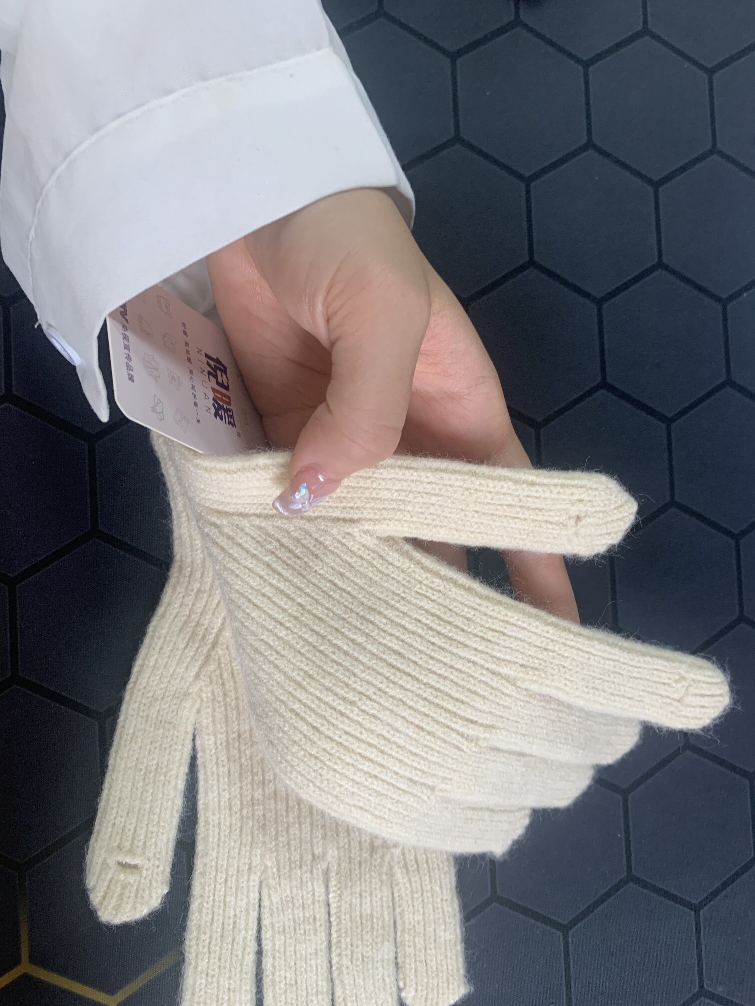 很漂亮的手套,手套是羊毛材质,摸起来还舒服,玩手机的时候可以把手指露出来,还蛮方便的。手套是不起球的材质,款式很时尚,客服服务很棒,问题能很好的处理。2024.9.23