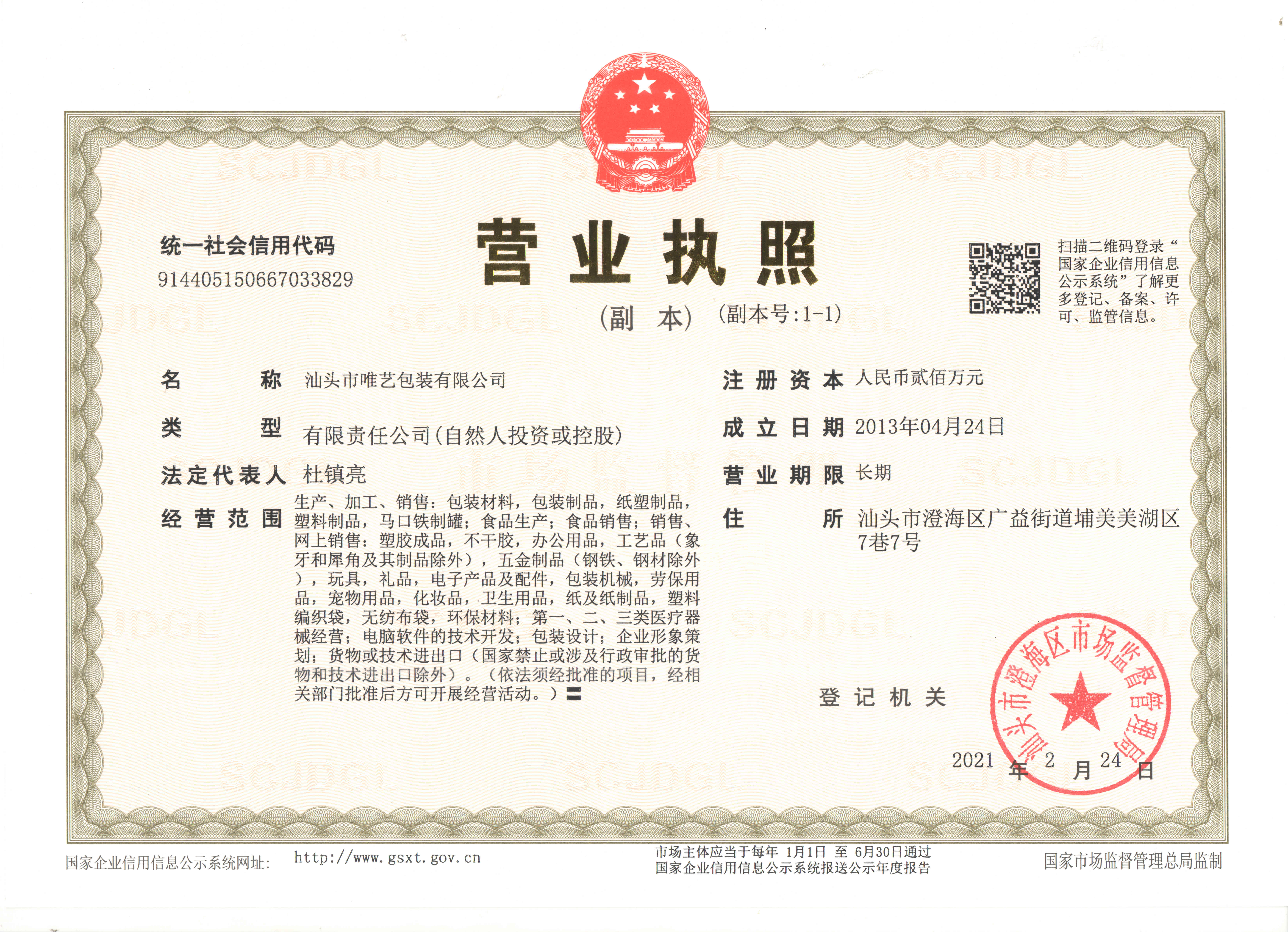 汕头市唯艺包装有限公司,1996年成立,位于广东省汕头市澄海区埔美街道美湖路。唯艺包装是一家集研发、设计、印刷、检测、机器配置、及售后服务为一体的现代化综合型印刷公司,自公司成立以来,始终以市场的需求...