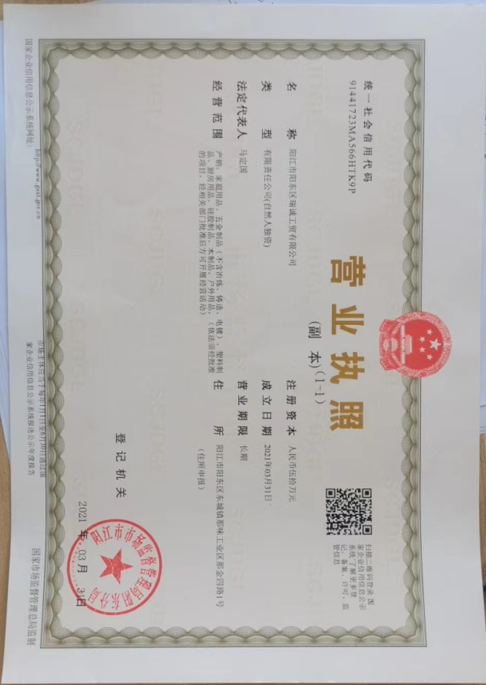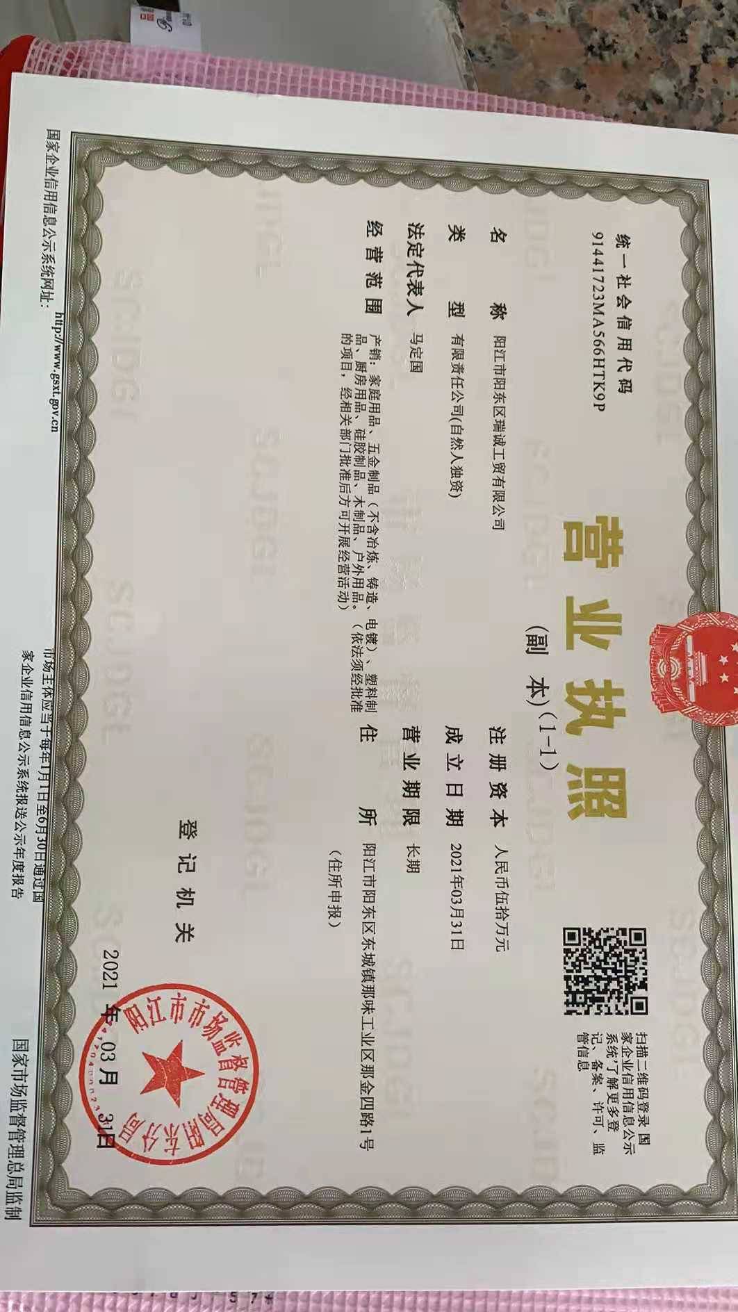 阳江市阳东区瑞诚工贸有限公司