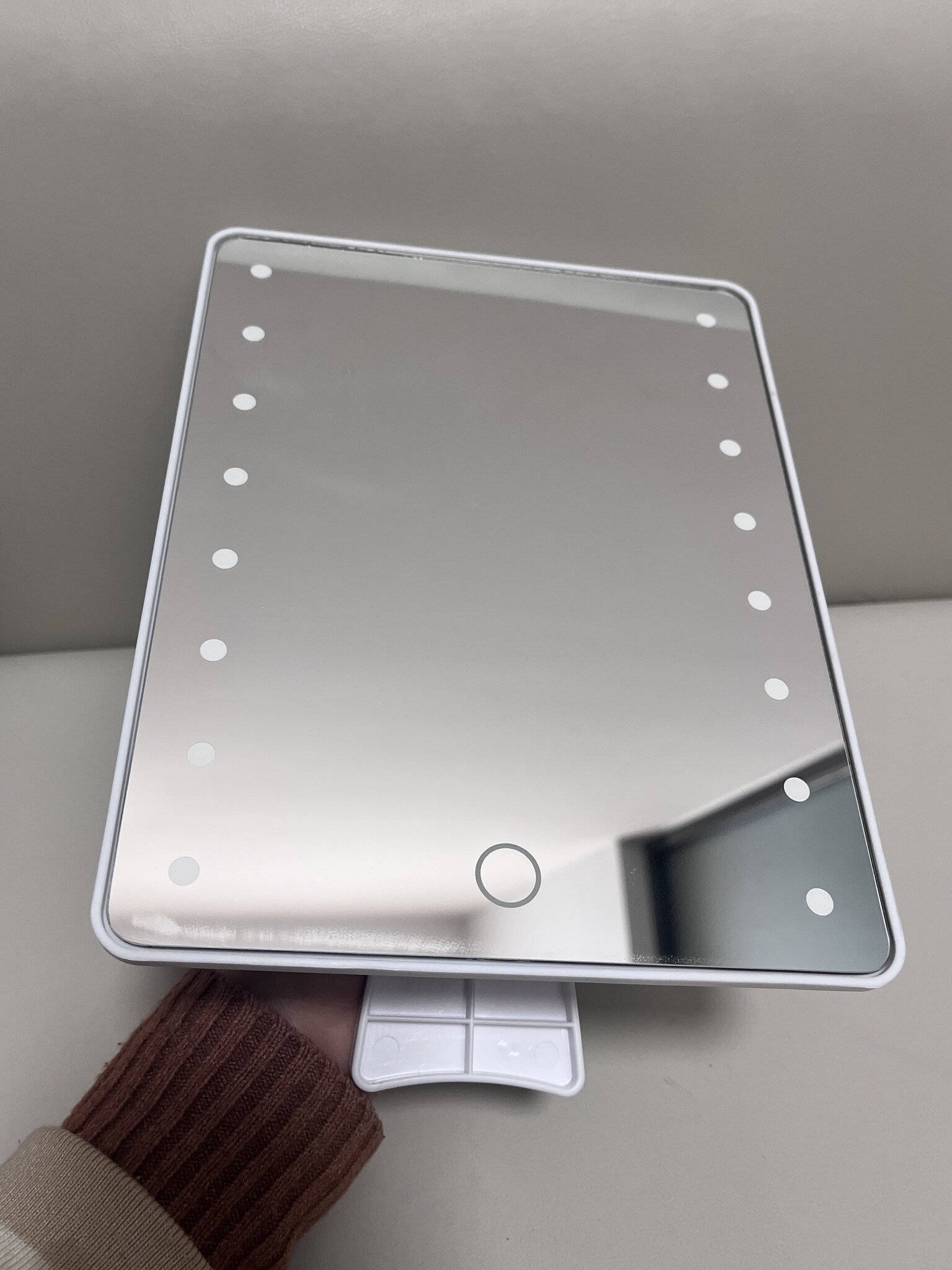 实物如图,照人没有变形,高清晰度,用电池,灯珠亮度不算特别亮但是能接受,我放便携的化妆箱正好2024.12.30