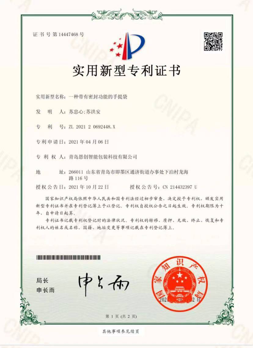 青岛恩创智能包装有限公司--一个智能包装袋朝阳工厂 苏忠心先生历经手提袋行业17年后 成立《青岛恩创智能包装有限公司》,截至今日公司成立6年,迄今为止为创业型工厂,公司现拥有国内较稀有的《固废...