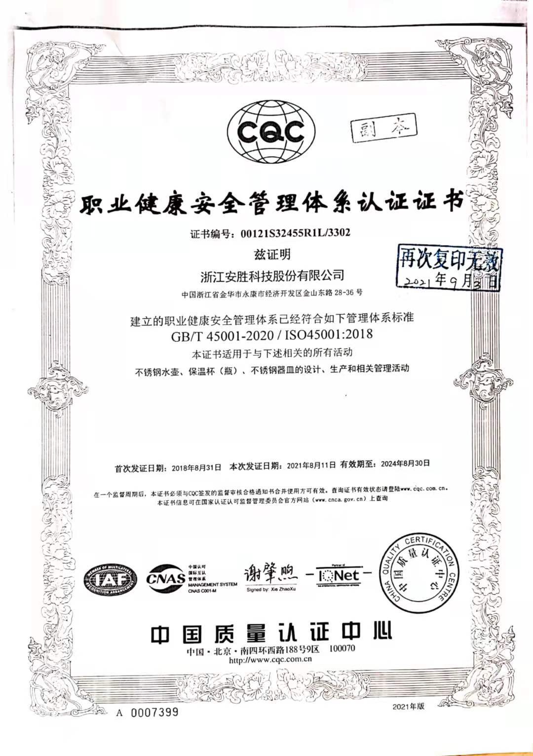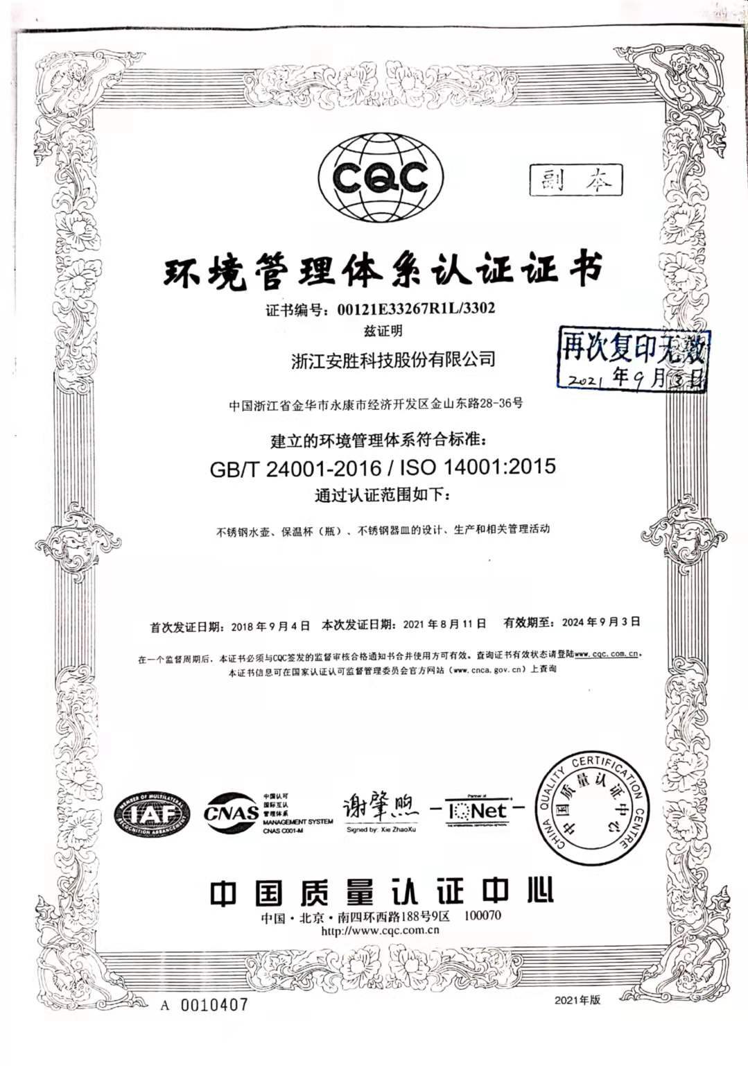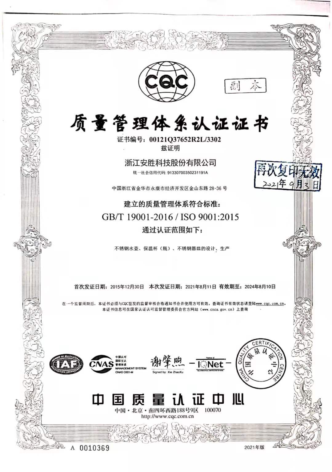浙江安胜科技股份有限公司是专注于不锈钢真空保温杯、水壶、餐具、特种真空器皿的研发、制造、销售和服务的国家高新技术企业,是全球产销规模最大的真空保温杯和日用器皿研发制造企业之一。 安胜科技坐落于“中国五...