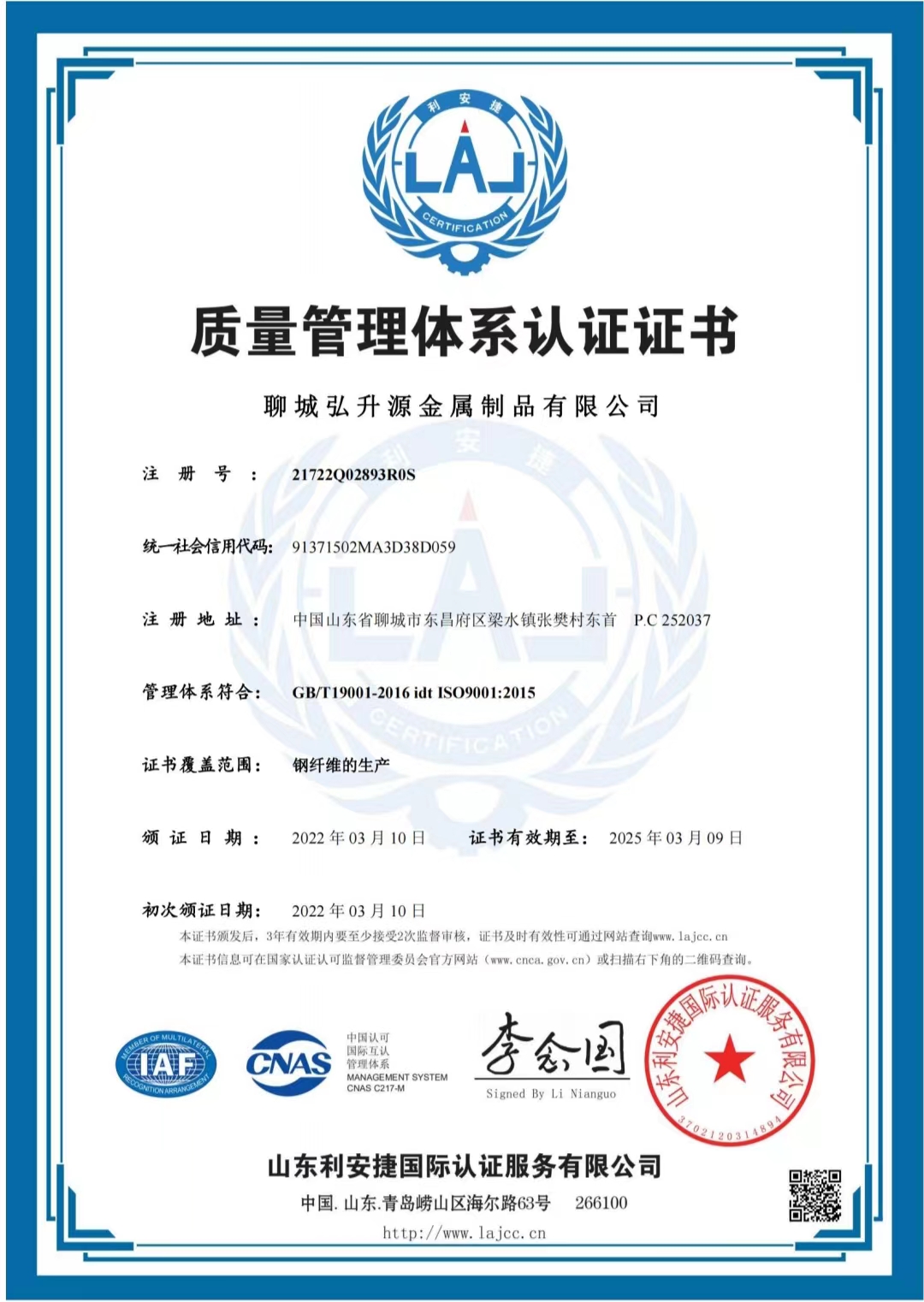 聊城弘升源金属制品有限公司坐落于江北水城,紧邻德商高速、济青高速、京九铁路、交通便利。我们拥有优秀的管理及科研人才,超前的领导团队,先进的钢纤维生产设备,公司是集产品开发、制造于一体。并已通过中国质量...