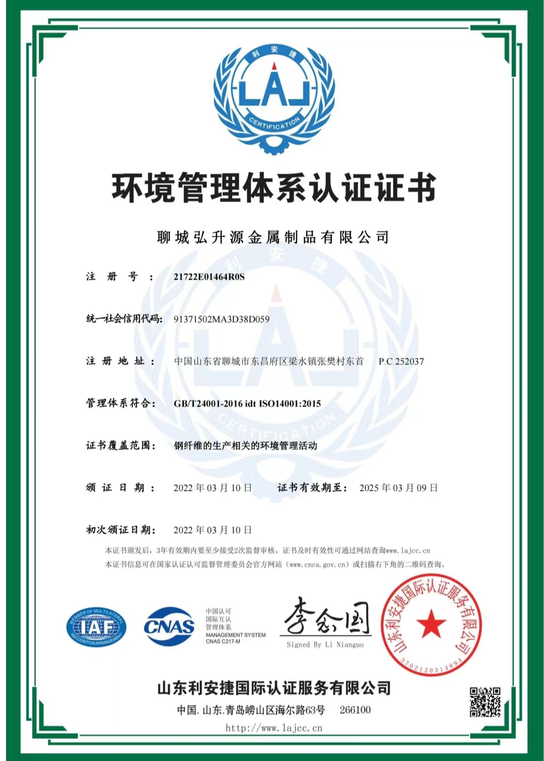 ISO 14001认证