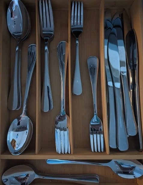 At nearly 50 years old, I've never had a full, matched set of flatware. We've acquired it from various thrift stores, restaurant closings, and yard sales over the years. As a result, we had a couple dozen forks, but we'd dig through to find the 3 or 4 of them that we actually liked. We probably had 30 combined spoons in varying sizes (of which we did buy 4 new a couple of years ago because the edges of many were kind of sharp to the edges of the mouth) that were in the same boat. We'd replaced t2025.10.19