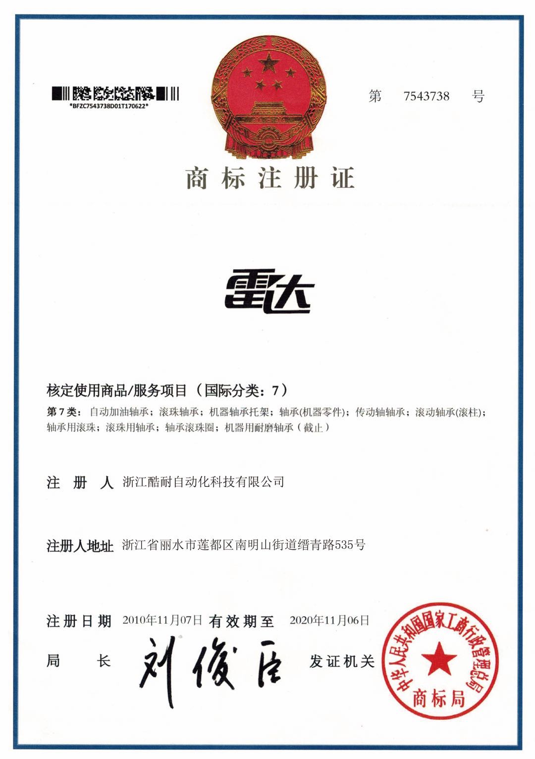 商标注册证书