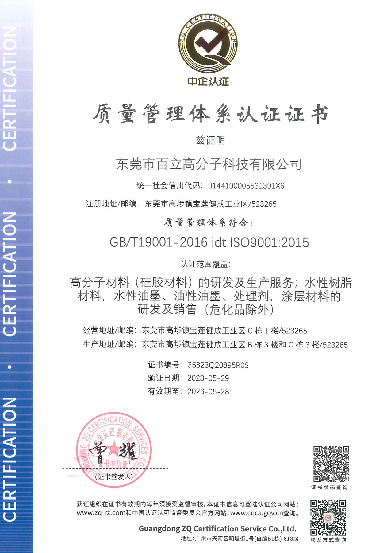 东莞市百立高分子科技有限公司