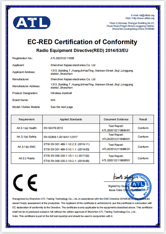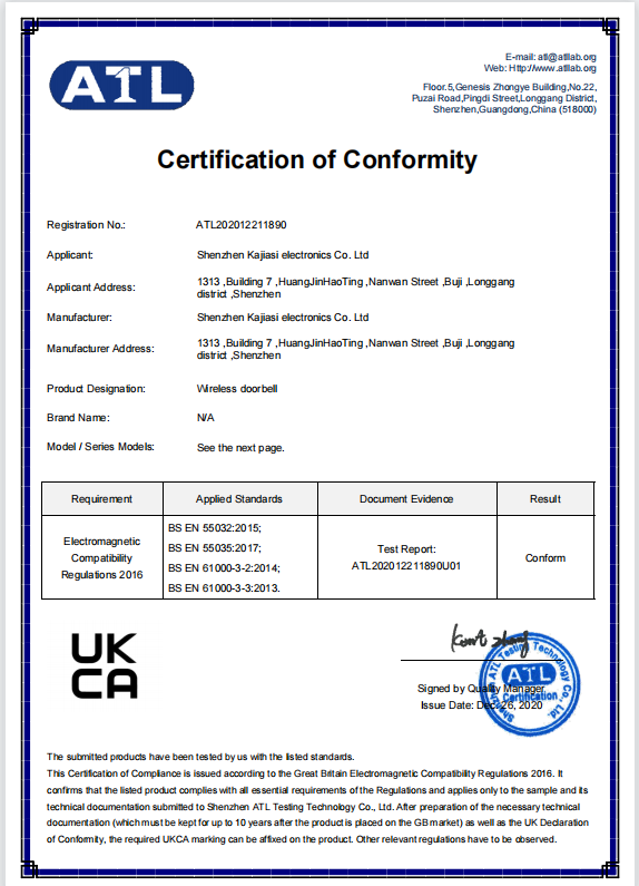 深圳市卡佳斯电子有限公司是门铃等产品专业生产加工的公司,拥有完整、科学的质量管理体系。深圳市卡佳斯电子有限公司的诚信、实力和产品质量获得业界的认可。欢迎各界朋友莅临参观、指导和业务洽谈。 现代化企业...