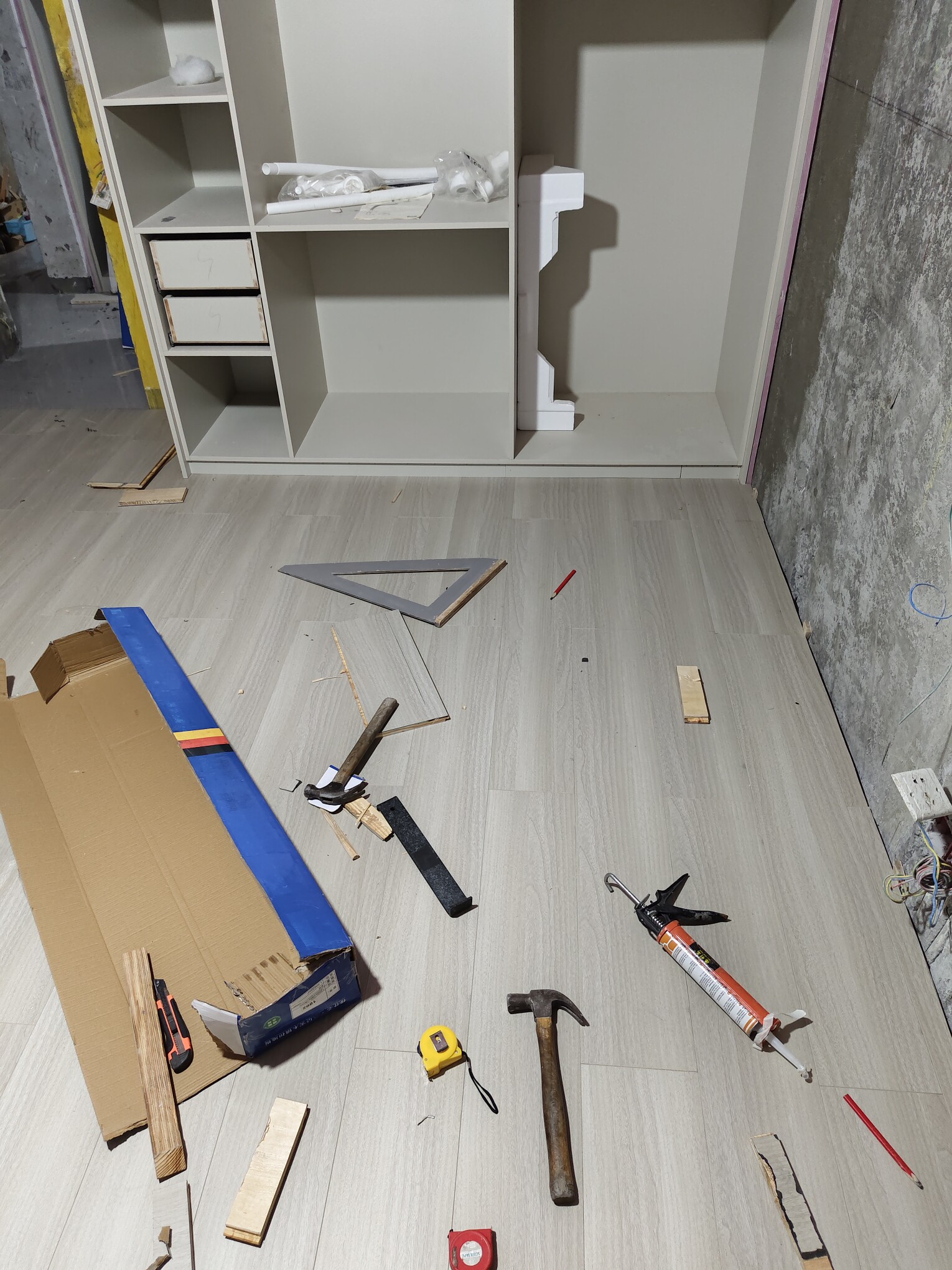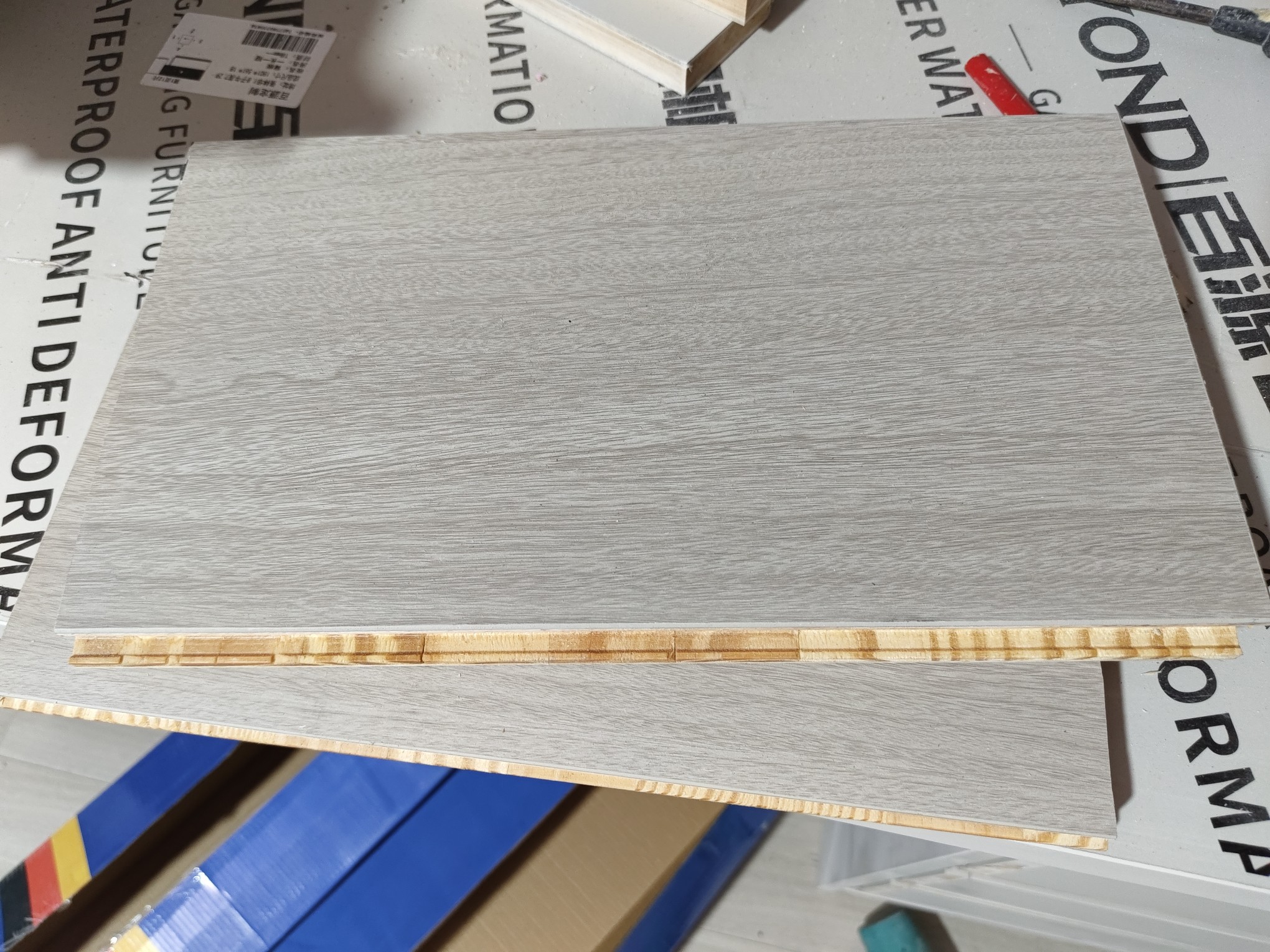 铺完以后颜色非常好看,类似白灰黄的过渡,比罗马灰这种白,比衣柜的子午灰黄很多。颜色非常素雅,很好看。 用料更是一绝,算上耐磨层8层,层层分明,每一层都很厚实。最中间的木芯是横着一根根排布的,和大多数木木板顺着长边竖着排布不同,理论上这样确实更牢固。 包装好,发货快,客服稳定在线。非常满意的一次购物,狠狠的好评了。。 2024.8.17