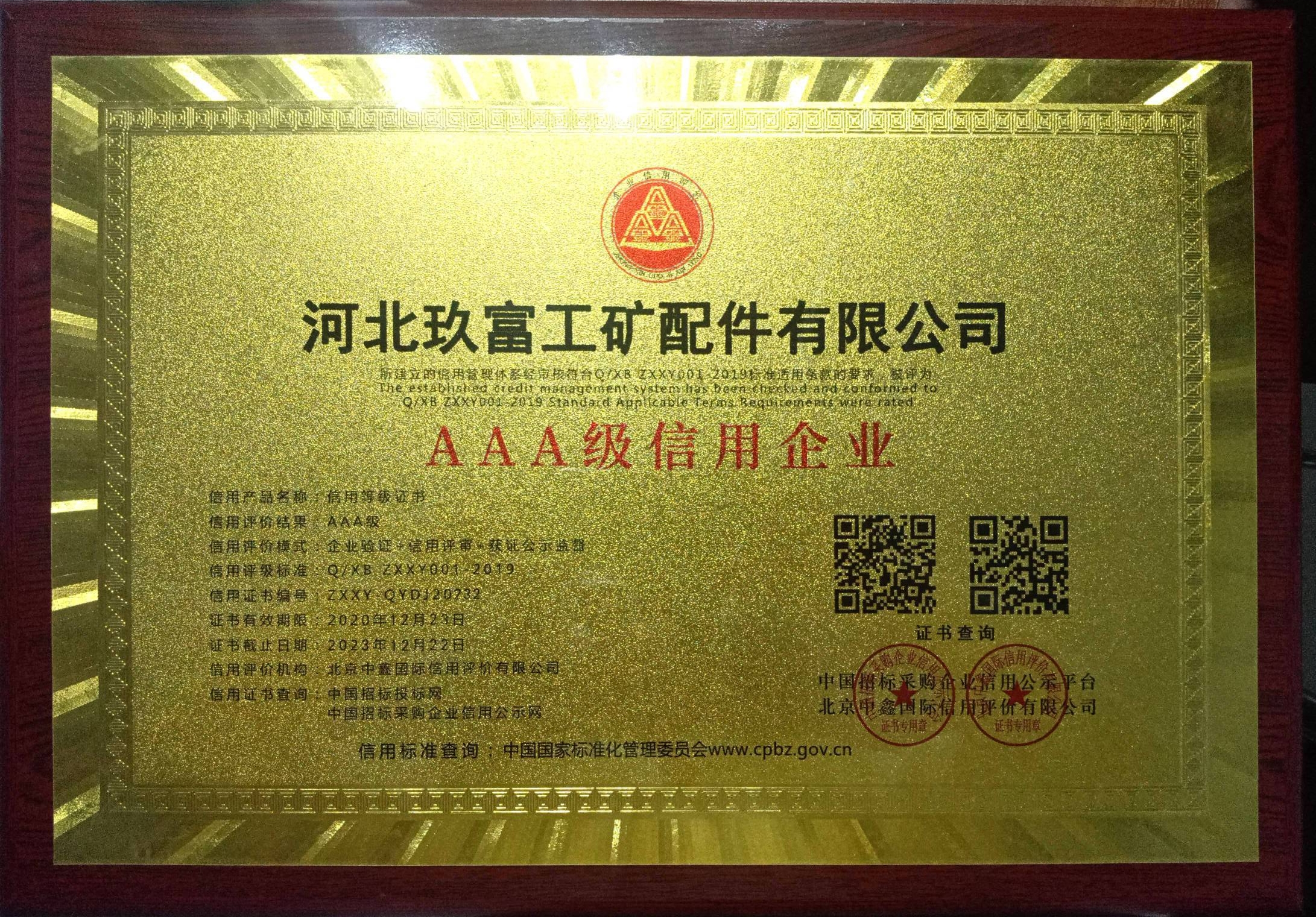 AAA诚信等级