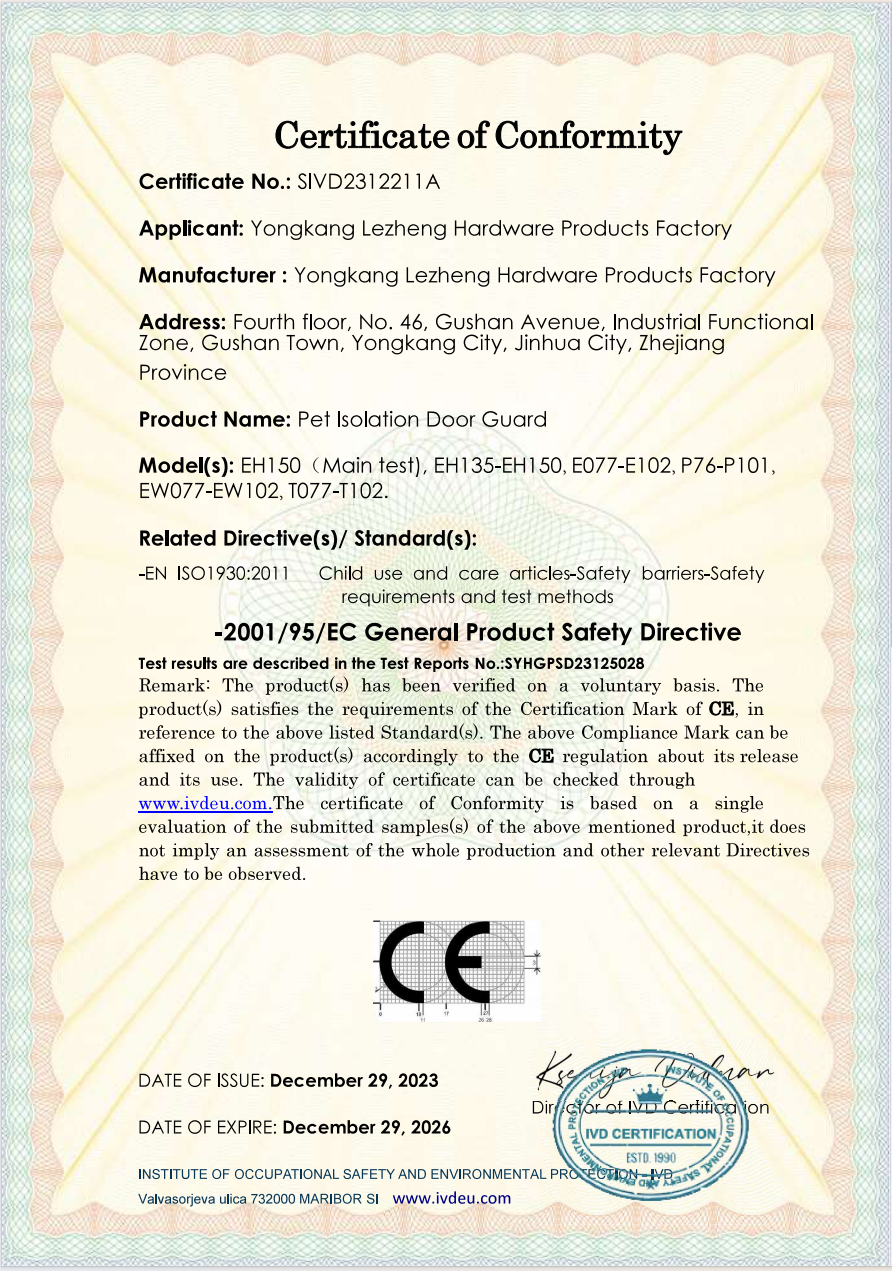 永康市乐峥五金制品厂是宠物围栏、宠物围栏配件、儿童安全门护栏等产品专业生产加工的公司,拥有完整、科学的质量管理体系。永康市乐峥五金制品厂的诚信、实力和产品质量获得业界的认可。欢迎各界朋友莅临参观、指导...