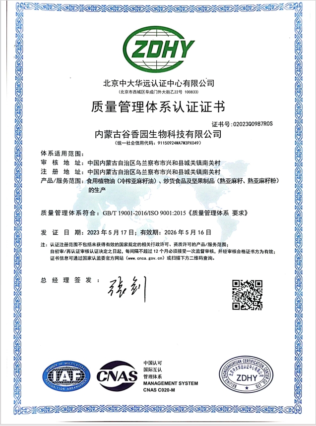 内蒙古谷香园生物科技有限公司成立于2022年,位于内蒙古乌兰察布市,是一家依托内蒙古大草原的农业资源,以亚麻籽系列产品研发为核心专业生产冷榨亚麻籽油、亚麻籽、亚麻籽粉等食品的生产企业。拥有“益谷原香”...