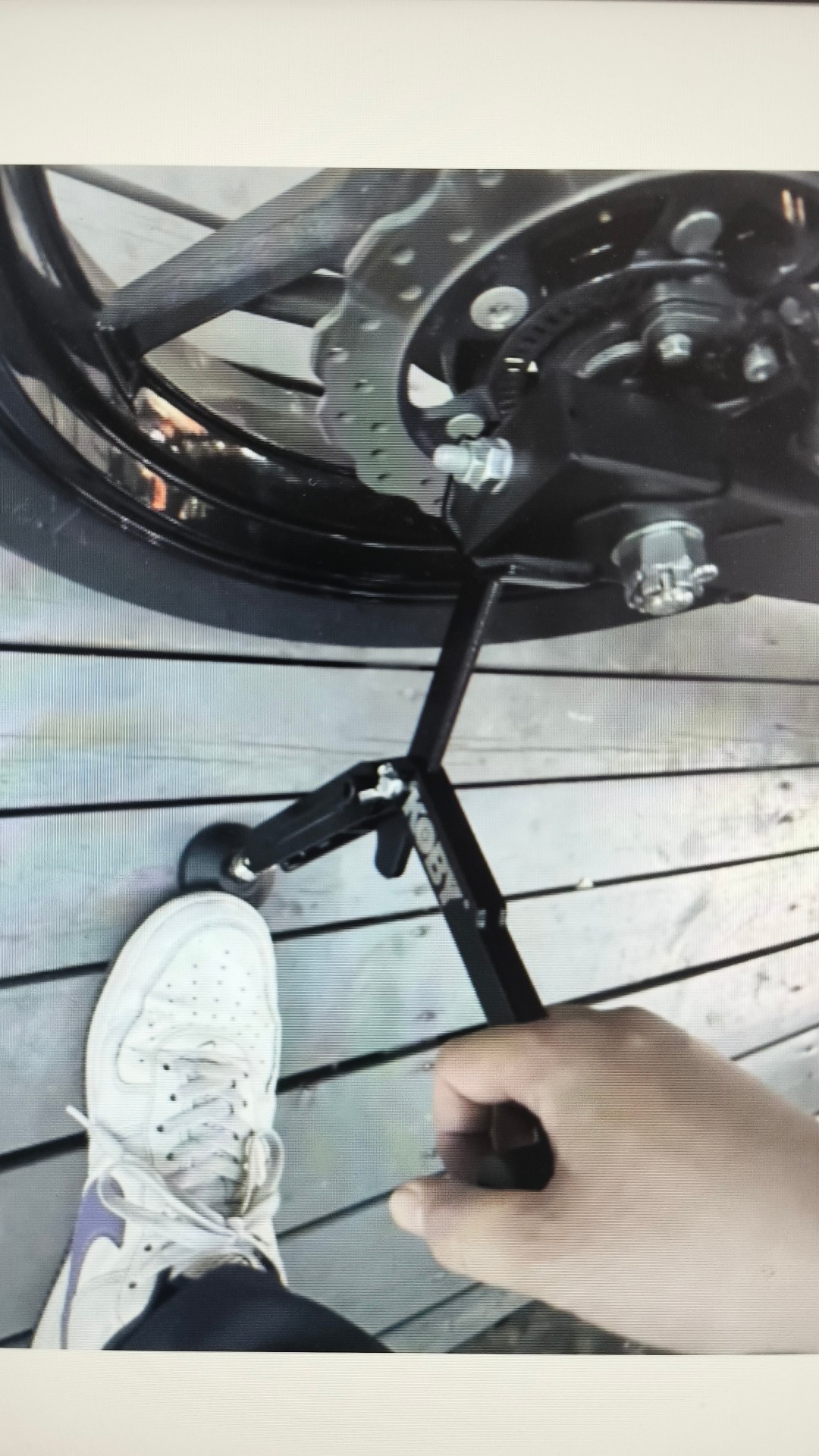 第一个起的非常稳,而且起的高度也是非常OK,比较高 换个机油洗个链条啥的都非常OK,第二个材质碳钢的材质是比铁更牢固,承受也更高,大几百斤的那种绝对是非常轻松的。第三,老板还贴心送了刹车绑带和收纳袋,很好很实用,轻松起车 完美。2025.6.10