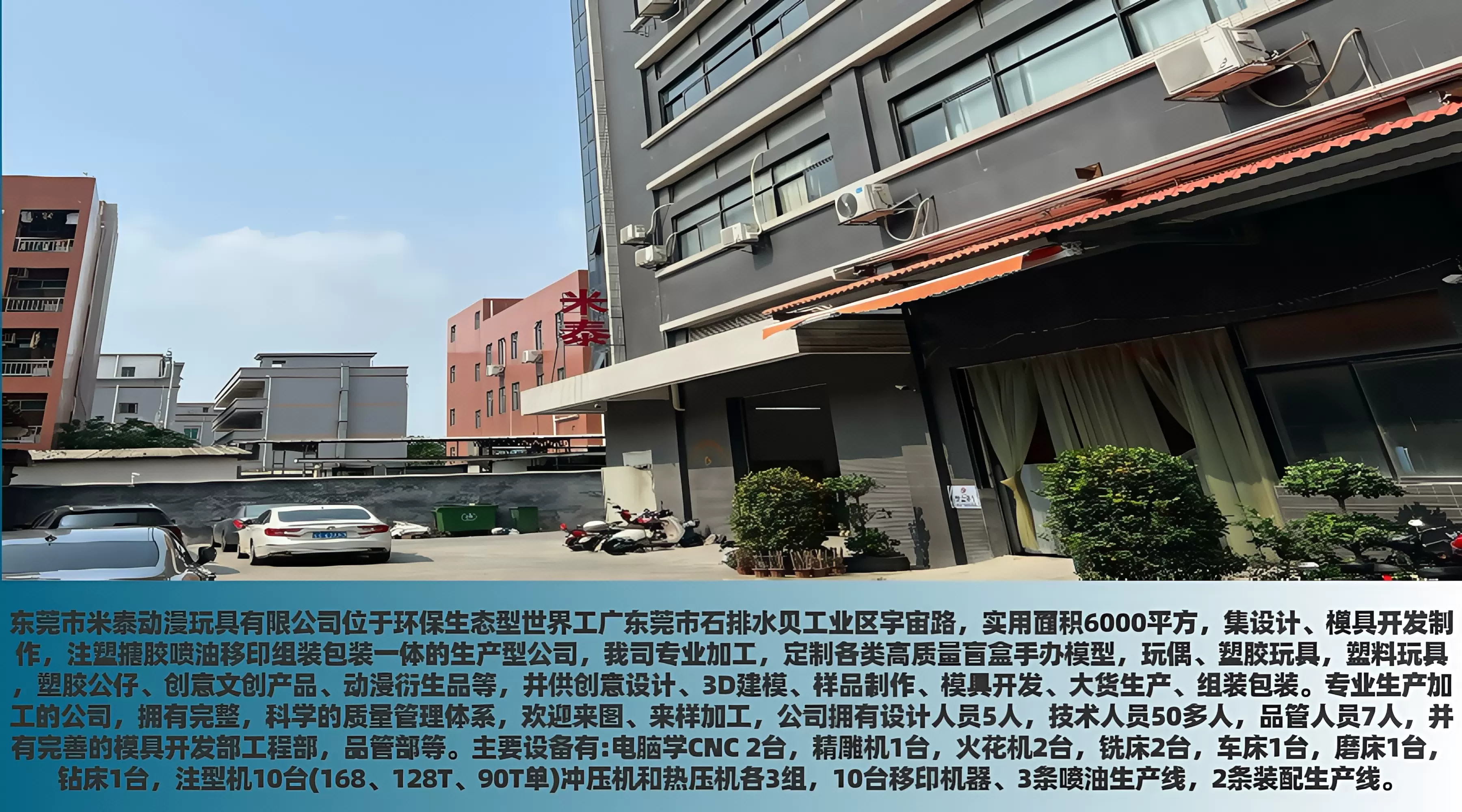 米泰动漫玩具有限公司 东莞市米泰动漫玩具有限公司位于环保生态型世界工广东莞市石排水贝工业区宇宙路,实用面积6000平方,集设计、模具开发制作,注塑搪胶喷油移印组装包装一体的生产型公司,我司...