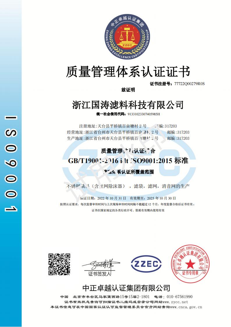 浙江国涛滤料科技有限公司始创于1990年,是一家专门专业从事过滤材料与分离设备设计制造的科技型中小企业。经过30多年的发展,现在我司新型 工业滤料及填料在冶金、制药、除尘、造纸、石油化工、煤炭、化纤、...