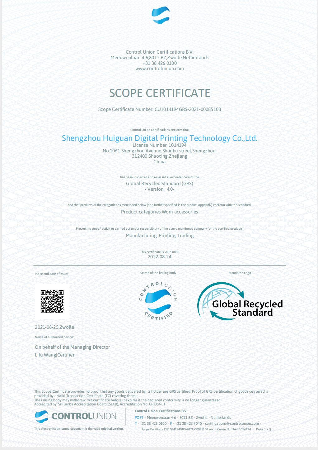 已通过SGS机构认证