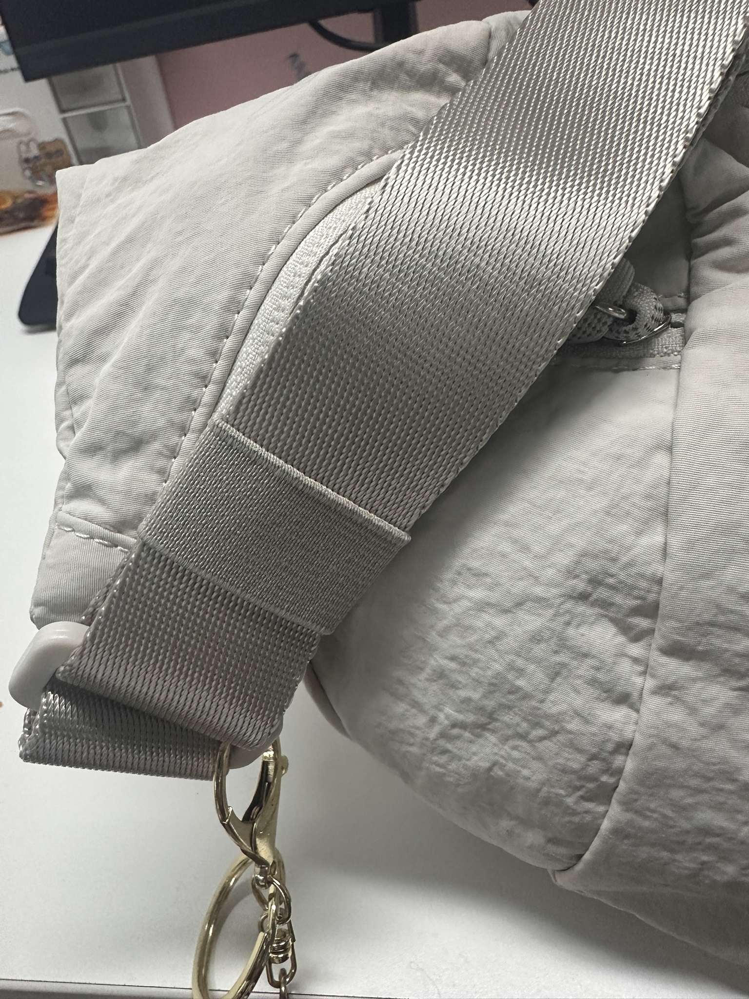 买了两家来对比,面料看起来差不多,仔细摸面料有些微手感差异,这家手感会滑一些,不仔细摸也察觉不了,唯一不同的就是包带的环扣两家颜色不一,不知道正品到底是什么颜色,就觉得哇这家的颜色不会突兀留了这家的2025.10.6