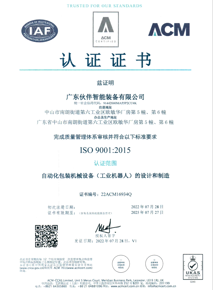 “广东伙伴智能装备有限公司”前身为中山伙伴包装器材有限公司(成立于2003年),位于广东省中山市南朗街道第六工业区,新公司成立于2020年,是为了适应粤港澳大湾区的经济发展而新成立的一家科技创新型新锐...
