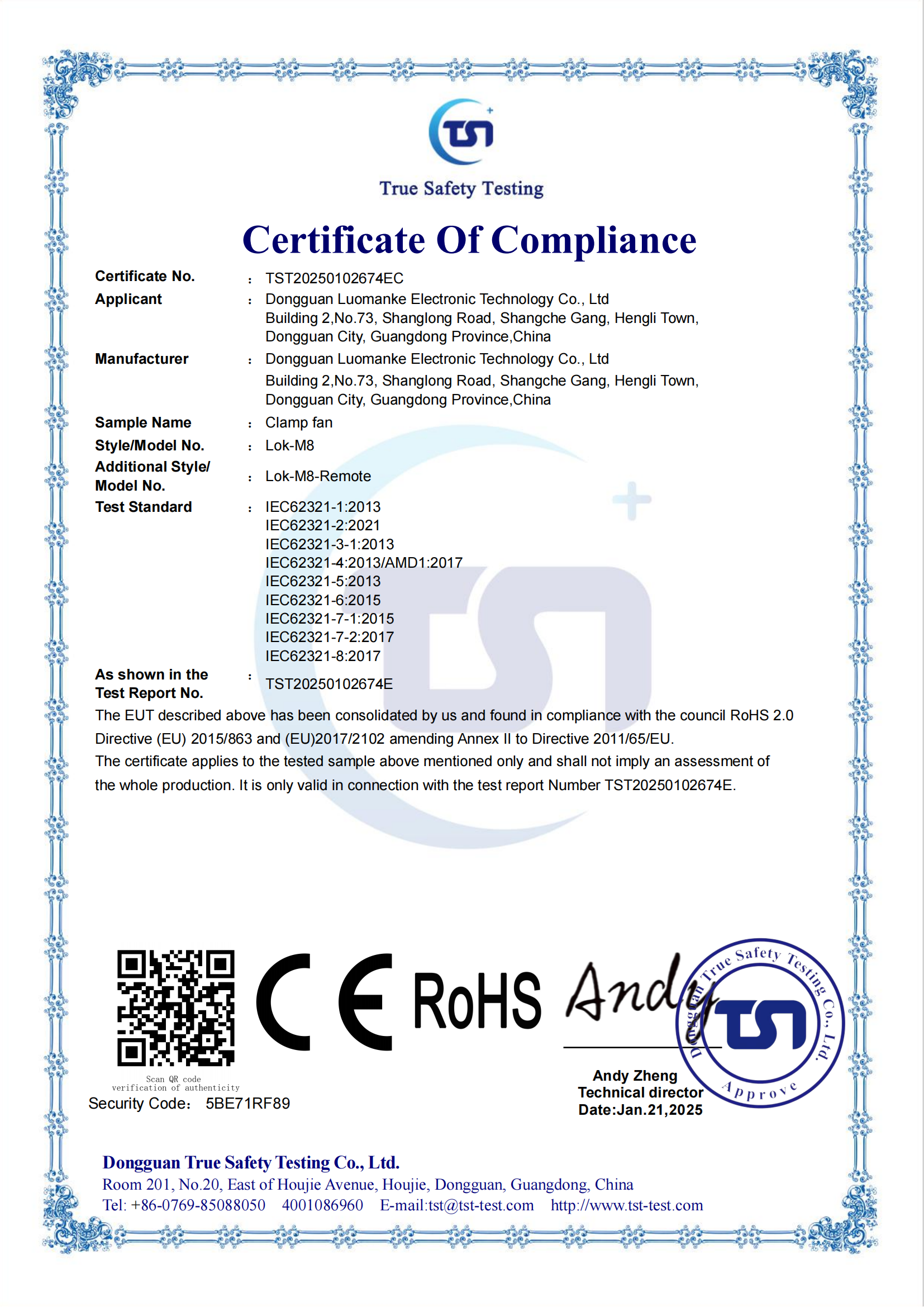 拥有RoHS认证