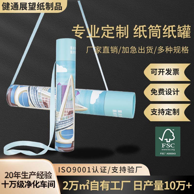 健通展望(唐山)纸制品有限公司坐落于河北省唐山市曹妃甸区主要生产纸护角,纸筒,纸管 ,纸罐等包装定制产品。有着丰富的纸罐纸筒生产经验,主要产品有:画报筒,圆形纸质茶叶罐,食品纸罐,化妆品纸管,日用品包...
