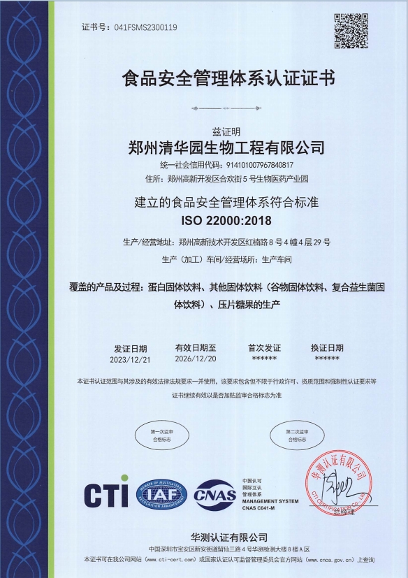 郑州清华园生物工程有限公司成立于2006年,位于河南郑州,历经数十年发展,现已发展成一家集健康食品、保健食品及特膳食品生产、研发、销售于一体的高新技术企业。现拥有5000平方数字化智能生产工厂,引进多...