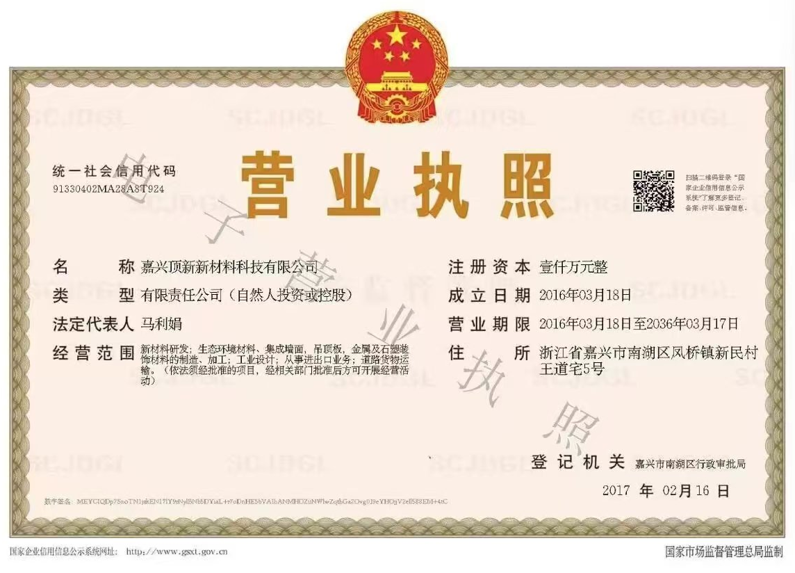 嘉兴顶新新材料科技有限公司专注于生态环境材料、集成墙面和吊顶板的生产制造,还有塑料粒子母料的生产制造。服务于建筑装饰领域。产品具有环保、美观、耐用等特点,广泛应用于住宅、商业空间等多种场合。公司拥有先...