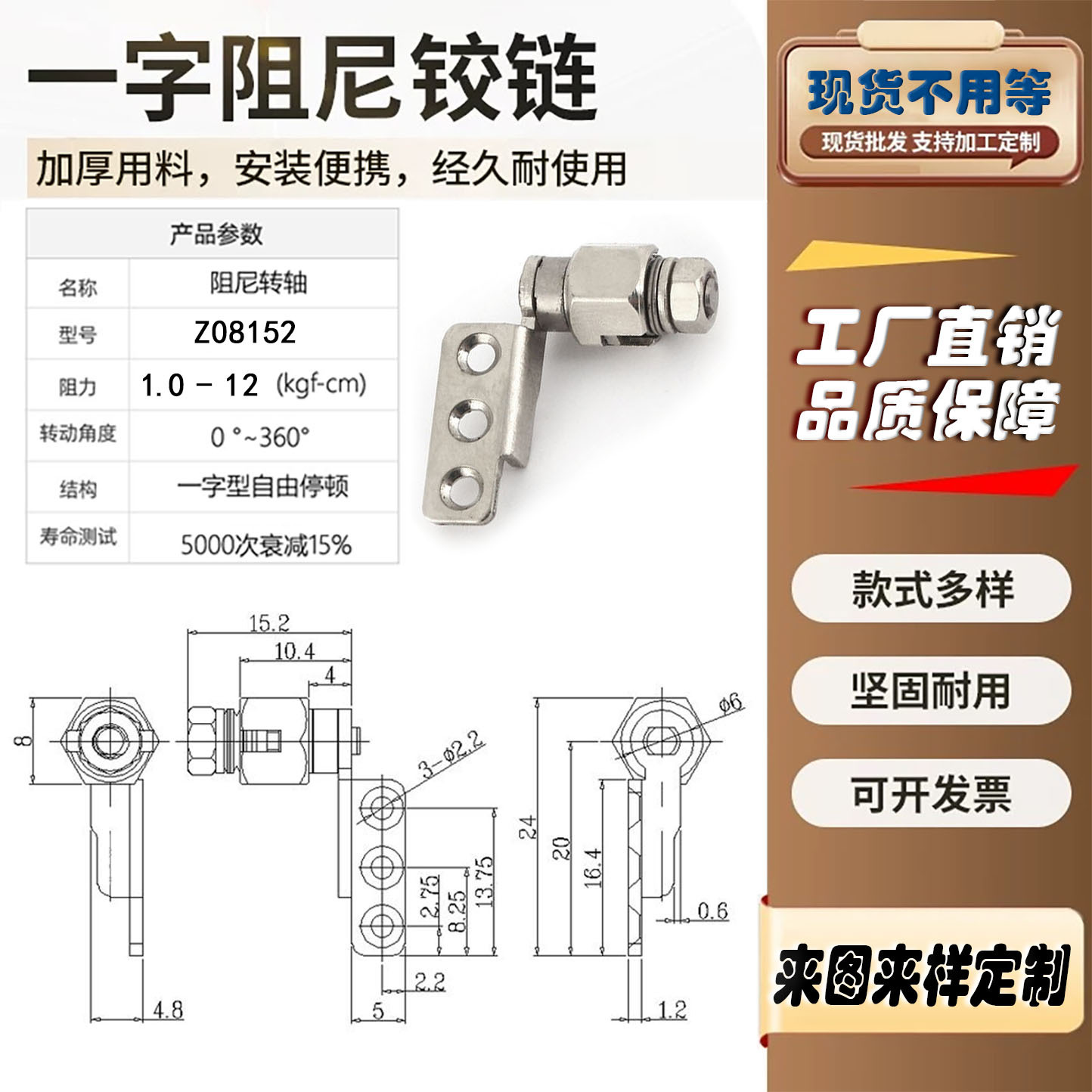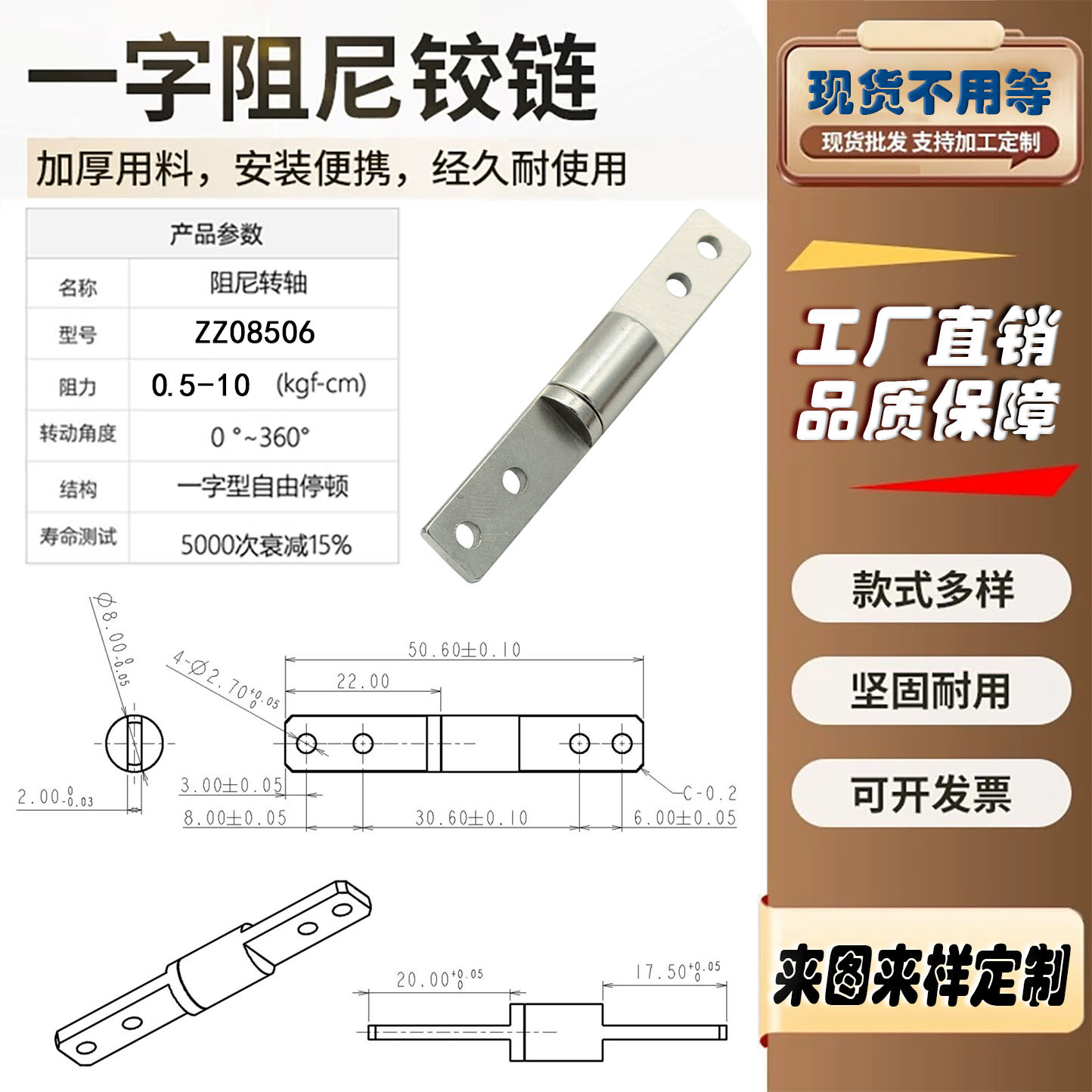 东莞市俊峰精密五金制品有限公司成立于2021年。主要从事转轴、支架、合页、滑轨、等产品设计、生产及研发,公司现有员工100多人,厂房占地面积2000多平方米,自动化装配机器8台,生产设备30多台,自有...