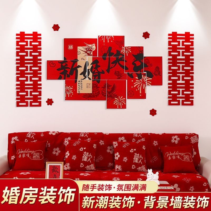 颜色很正,酒红色显得特别高级,植绒材质手感很好,立体设计很有层次感,贴在婚房里特别喜庆。2025.8.8