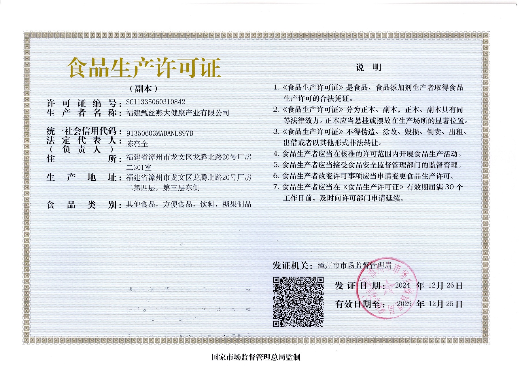 福建甄丝燕大健康产业有限公司成立于2024年01月12日,注册资金1000万人民币,是一家专业生产即食花胶、花胶粥类、鲜炖燕窝、即食燕窝、燕窝粥、胶原蛋白肽系列产品,压片糖果,滋补粉剂,大健康饮品及燕...