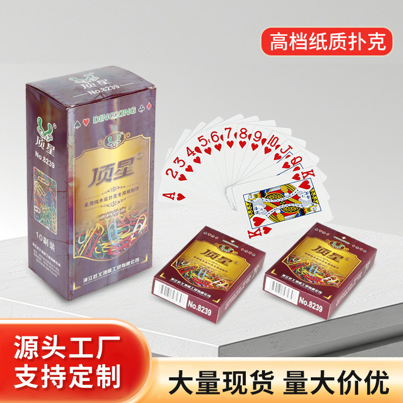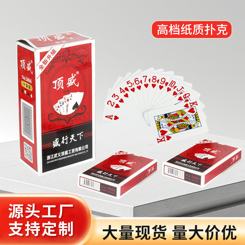 浙江武义顶盛工贸有限公司是专门开发、设计、生产和加工扑克牌及相关印刷的企业。公司自有纸仓库,纸张种类多种多样,随用随取,拥有先进、完整的专业扑克牌生产线,日产扑克牌20多万副,采用优质的材料、精湛的工...
