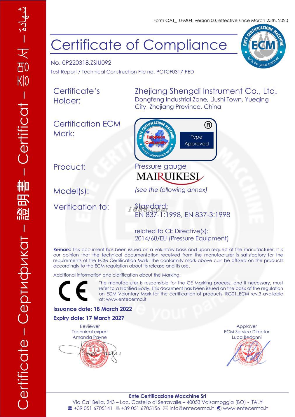 浙江圣迪仪表有限公司是专业生产开发压力变送器、船用压力表、电接点压力表、远传压力表、膜盒压力表、耐震电接点压力表、不锈钢膜盒压力表、YEJ矩形膜盒压力表、压力表、耐震压力表、不锈钢压力表、减压器、隔膜...
