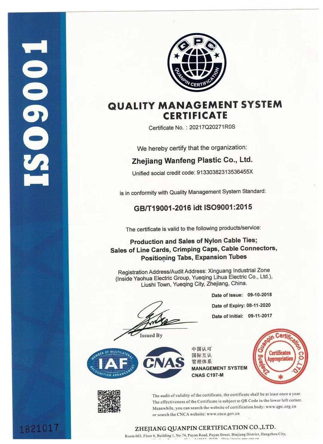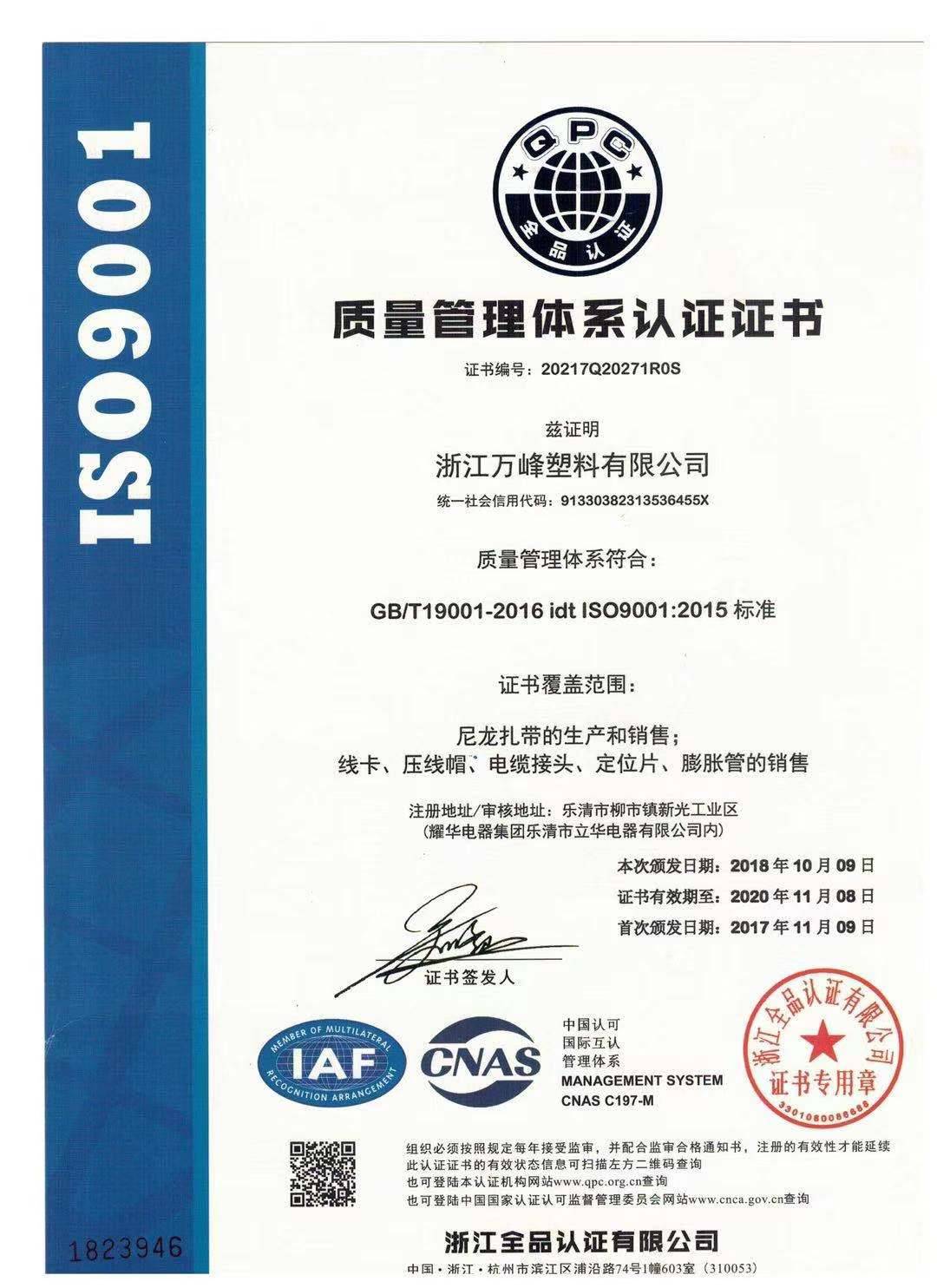 浙江万峰塑料有限公司是尼龙扎带、膨胀管、定位片、线夹、号码管、缠绕管、压线帽、钢钉线卡、电缆接头等产品专业生产加工的公司,拥有完整、科学的质量管理体系。浙江万峰塑料有限公司的诚信、实力和产品质量获得业...