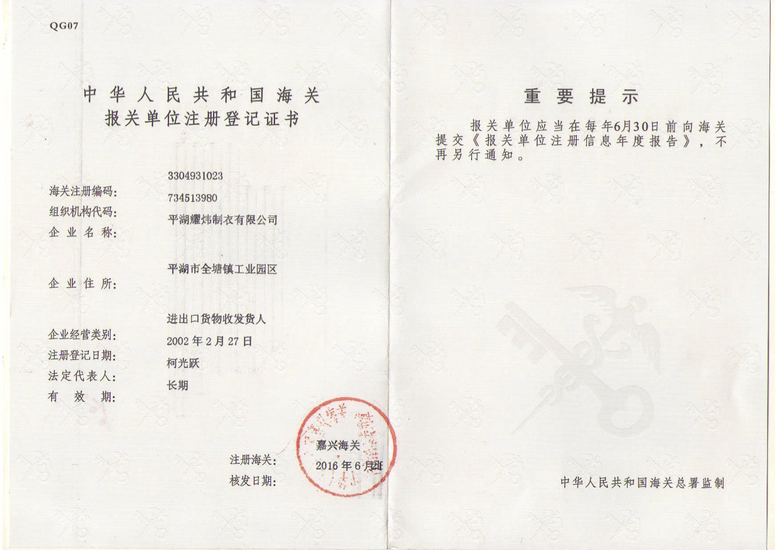 平湖耀炜制衣有限公司