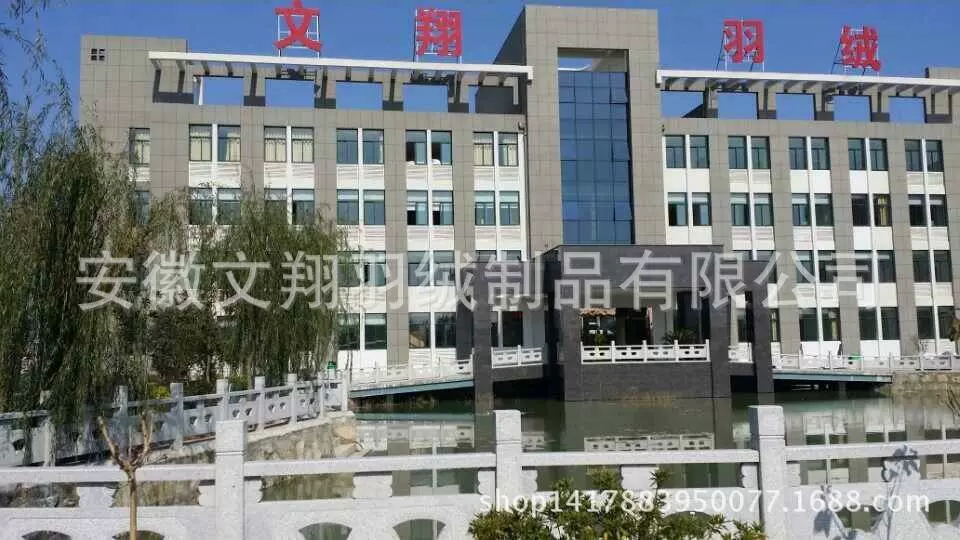 安徽文翔羽绒制品有限公司是一家生产加工羽绒,羽毛,羽绒制品的厂家。公司坐落在安徽省无为县羽毛工业园。本公司占地120亩,有全自动洗毛水洗机五台,三厢机五台,六厢机四台,单厢分毛机两台等。年加工羽绒、羽...