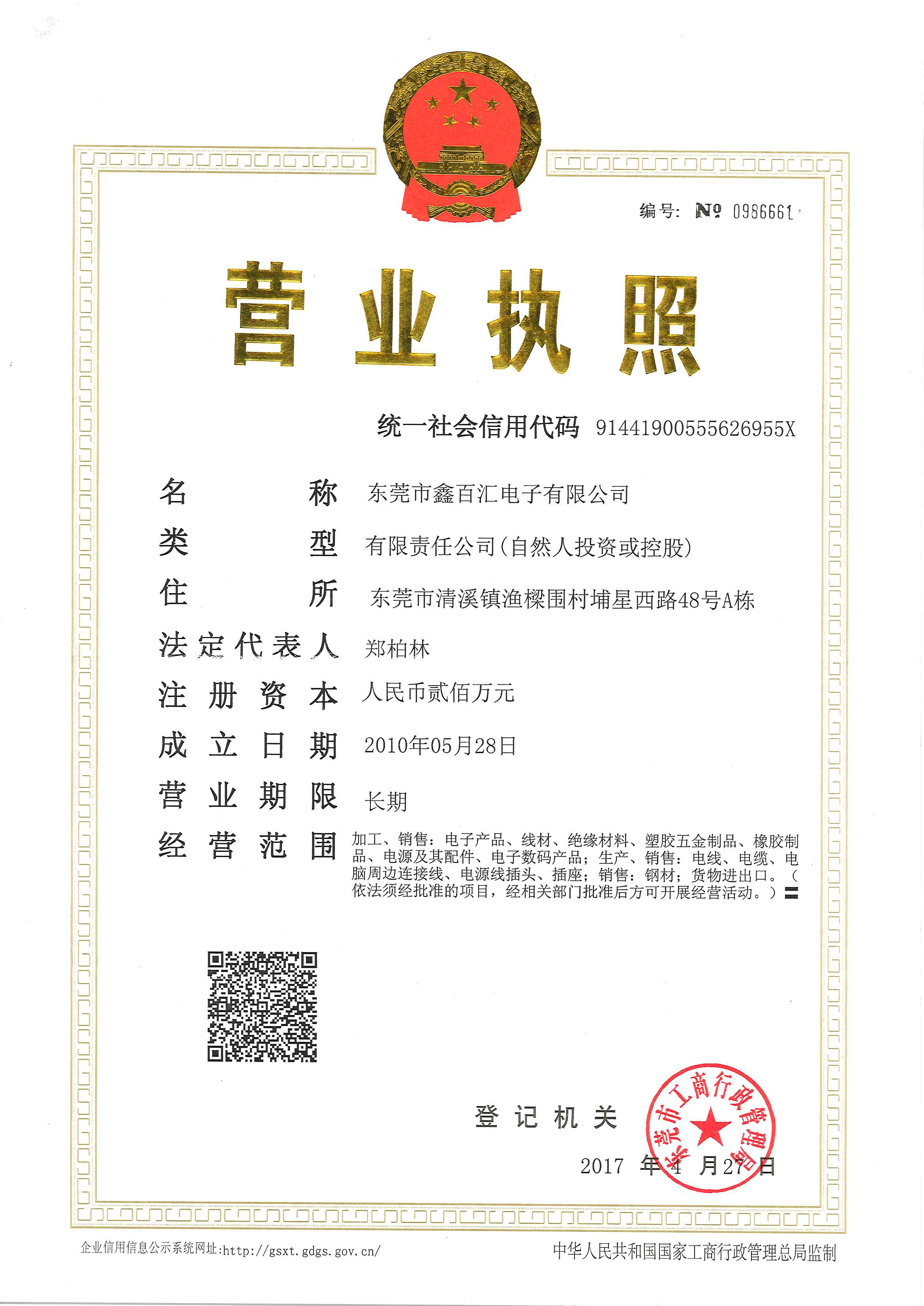 东莞市鑫百汇电子有限公司 是一家集研发、生产、销售电源线(及组件)、电源配线、电脑周边线(及电子原配件)的民营企业。工厂面积一万余平方米,员工三百余人。 公司己取得ISO9001:2015...