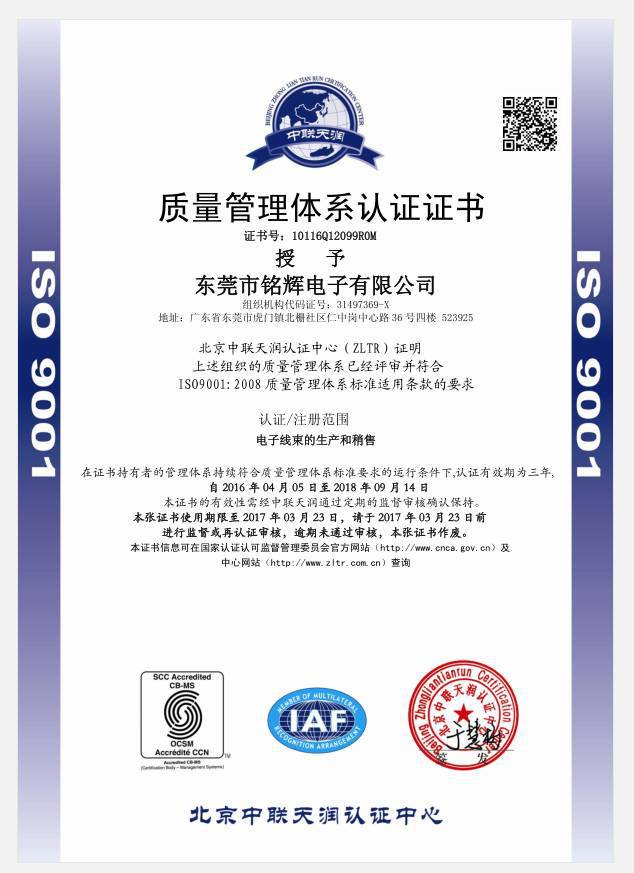 东莞市铭辉电子有限公司,位于东莞市虎门镇是一家集设计.开发.生产.销售.连接线系列产品于一体的企业,可根据客户要求设计.加工各种规格配套连接线。公司具有丰富的生产经验和技术实力,在内部建立了完善的管理...