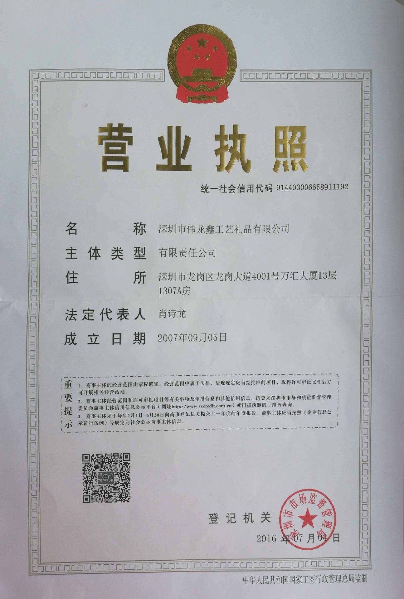 深圳市伟龙鑫工艺礼品有限公司