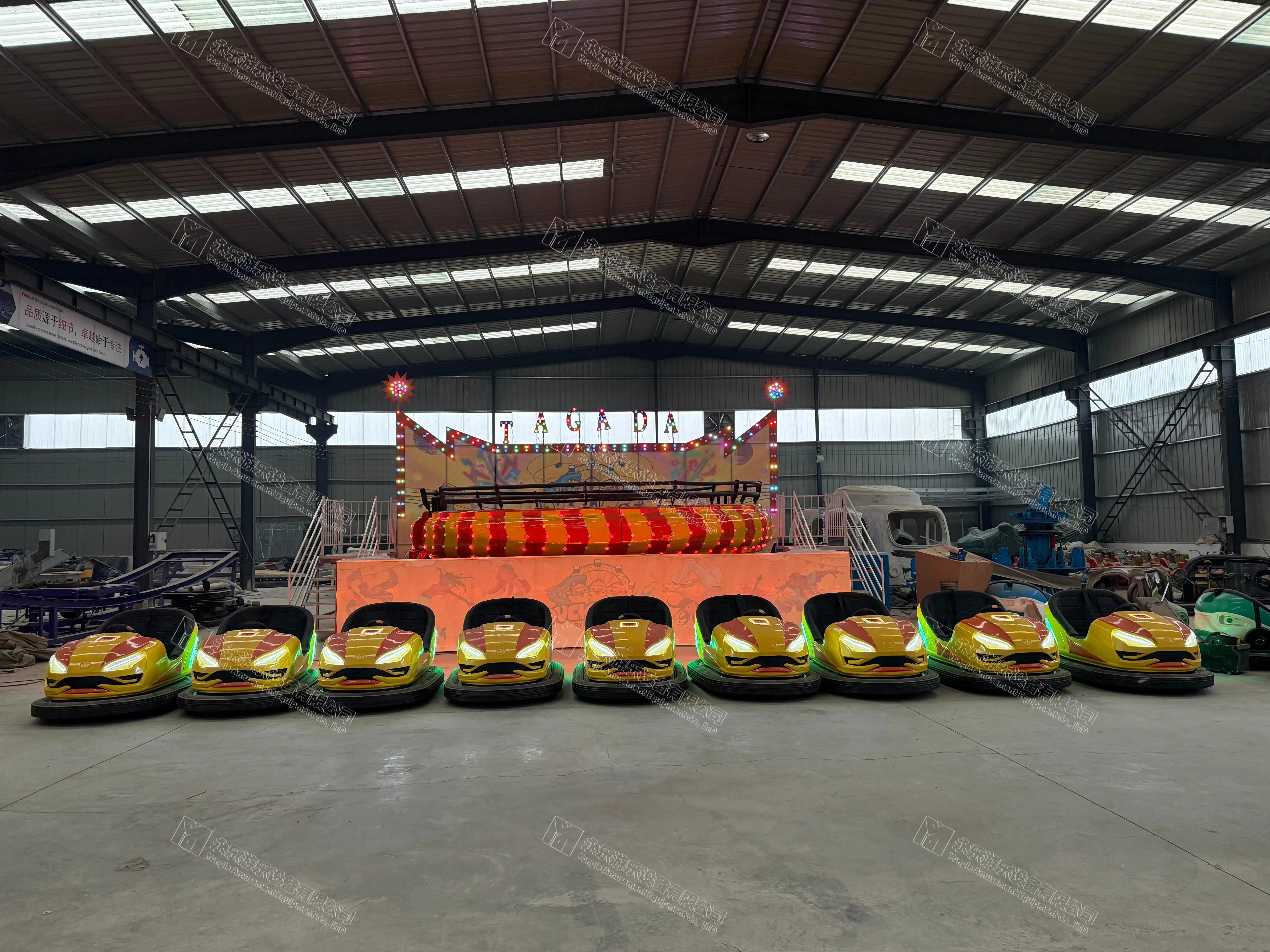 荥阳市永乐游乐设备有限公司是专业从事游乐设备研发、设计、生产、销售为一体的生产厂家。主要产品有:碰碰车、飘车、自控飞机、旋转飞椅、海盗船、星际探险、太空穿梭、迪斯科转盘等百余种产品。公司拥有掌握高精确...
