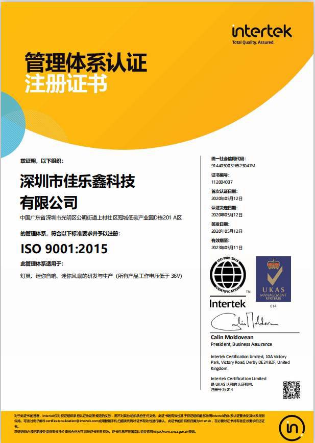 深圳市佳乐鑫科技有限公司成立于2015,是一家设计、研发、制造和销售为一体的多元化国家高新技术企业。厂房面积4000多平方米,各类人才总数100余人,公司坚持以设计创新为驱动,拥有多项国家技术专利及多...