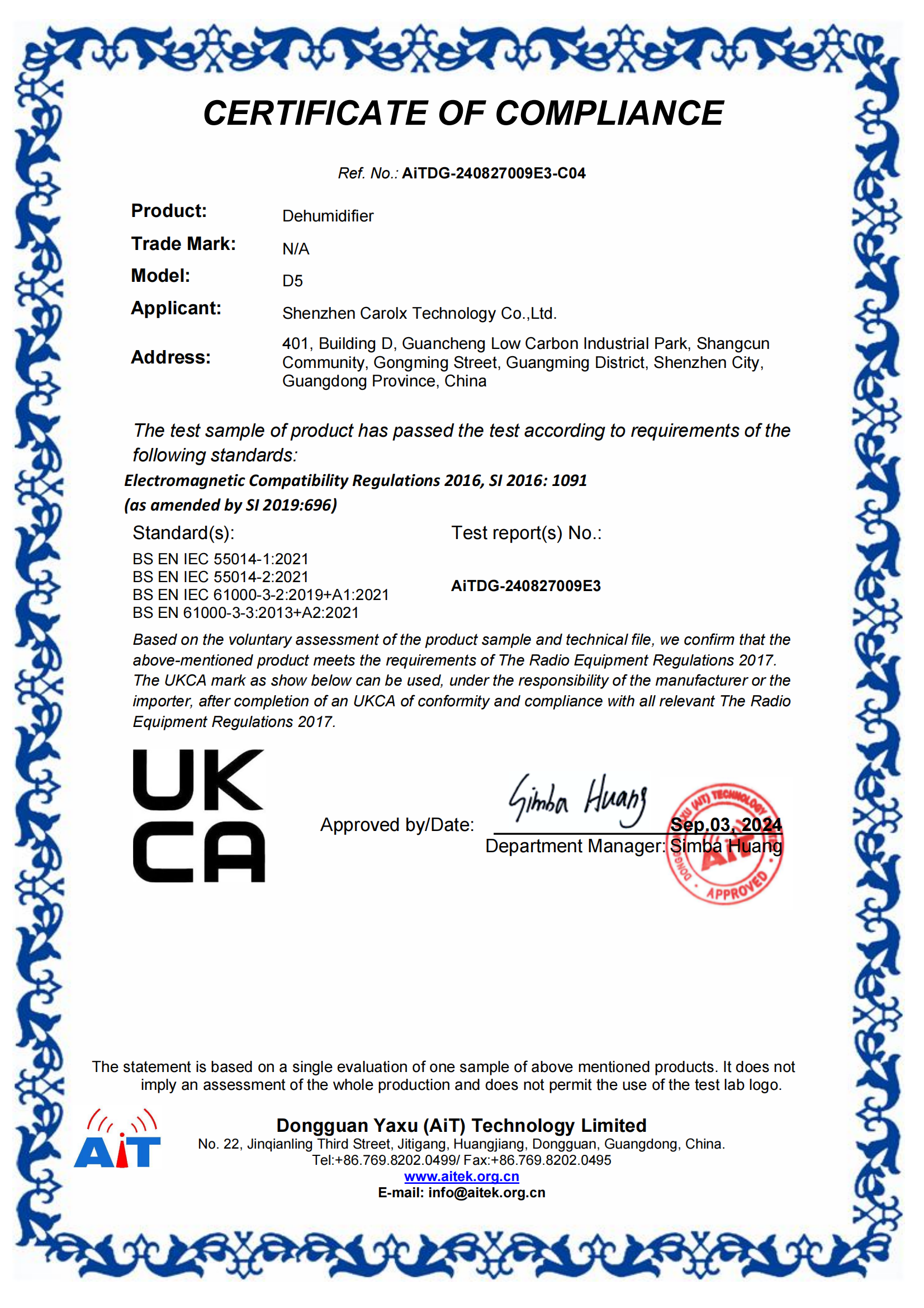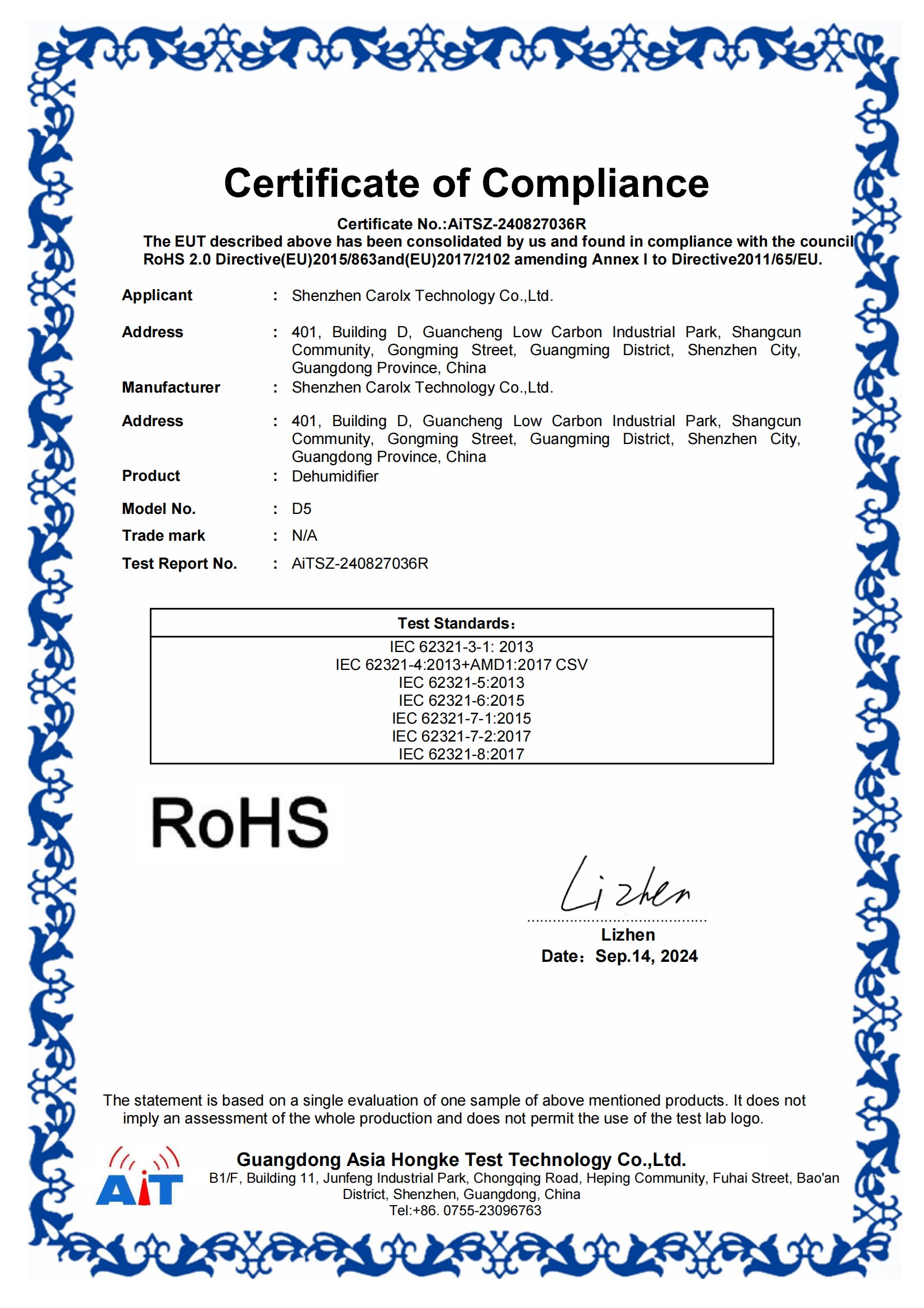 拥有RoHS认证